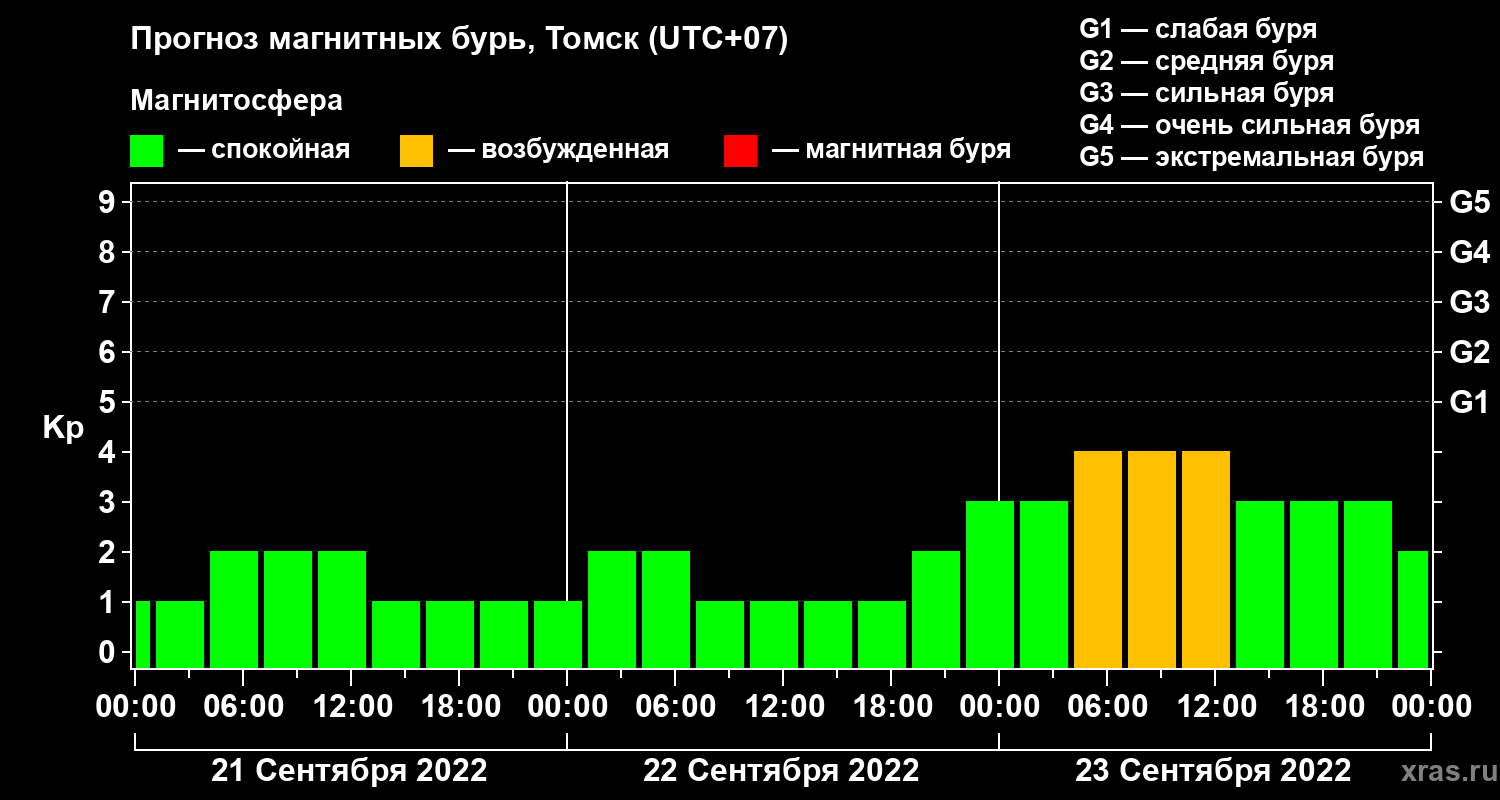 Прогноз магнитных бурь в Томске на 21 сентября 2022 года