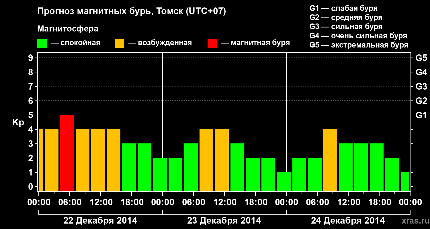 Прогноз магнитных бурь в Томске на 22 декабря 2014 года