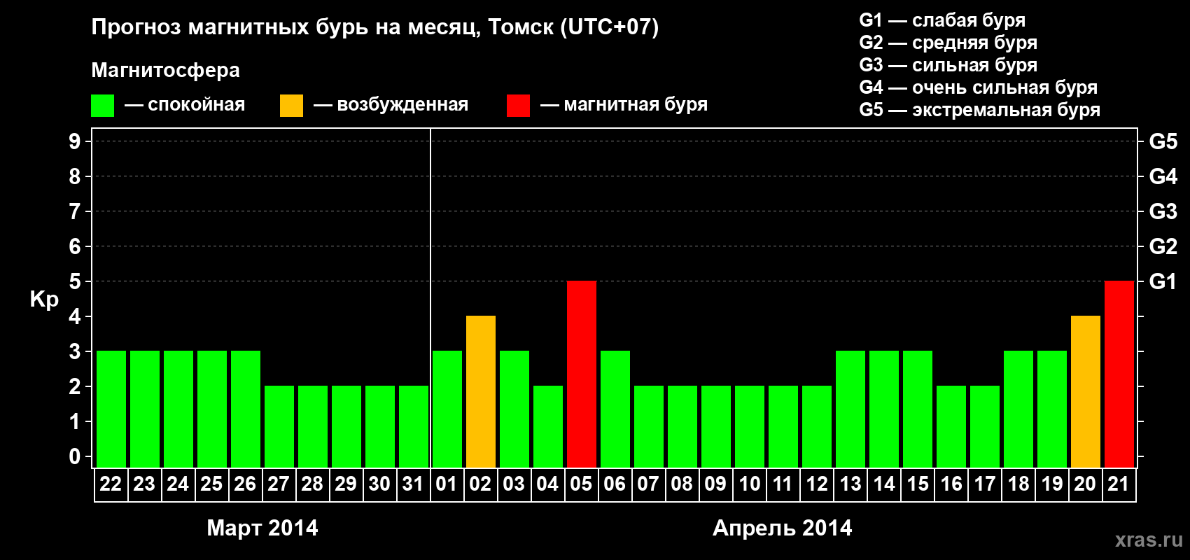 Прогноз магнитных бурь в Томске — 22 марта 2014 года