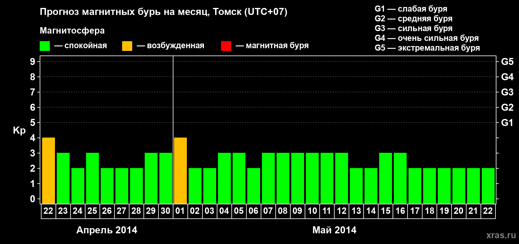 Прогноз магнитных бурь в Томске — 22 апреля 2014 года