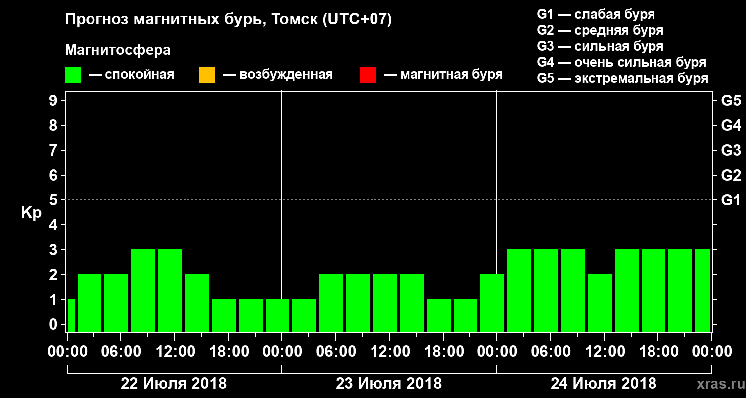 Прогноз магнитных бурь в Томске — 22 июля 2018 года