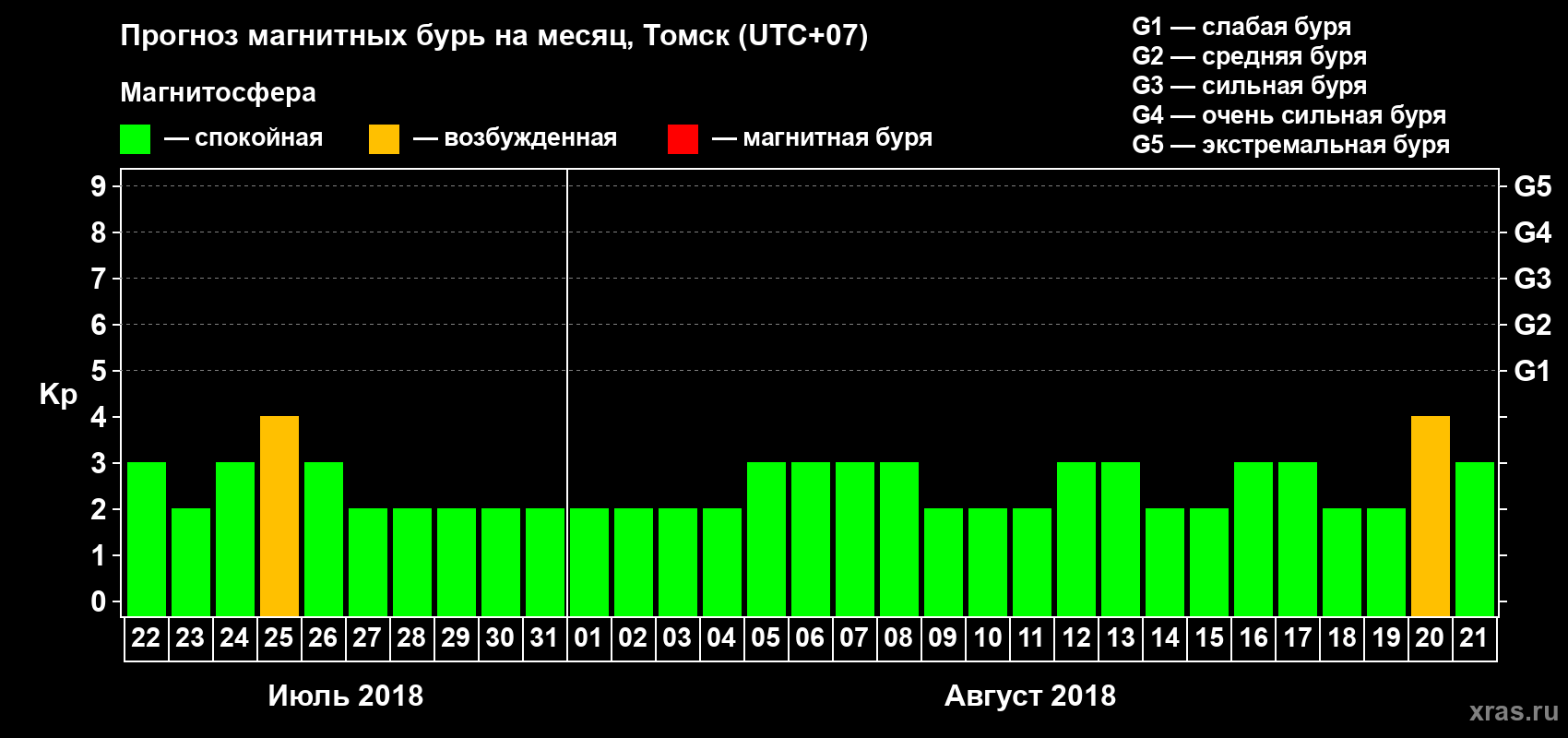 Прогноз магнитных бурь в Томске на 22 июля 2018 года
