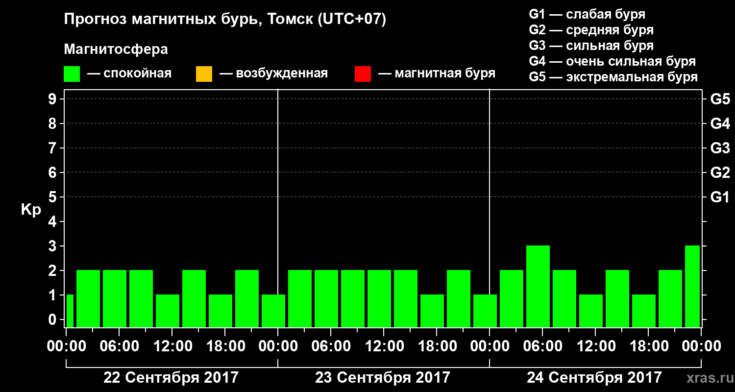 Прогноз магнитных бурь в Томске — 22 сентября 2017 года