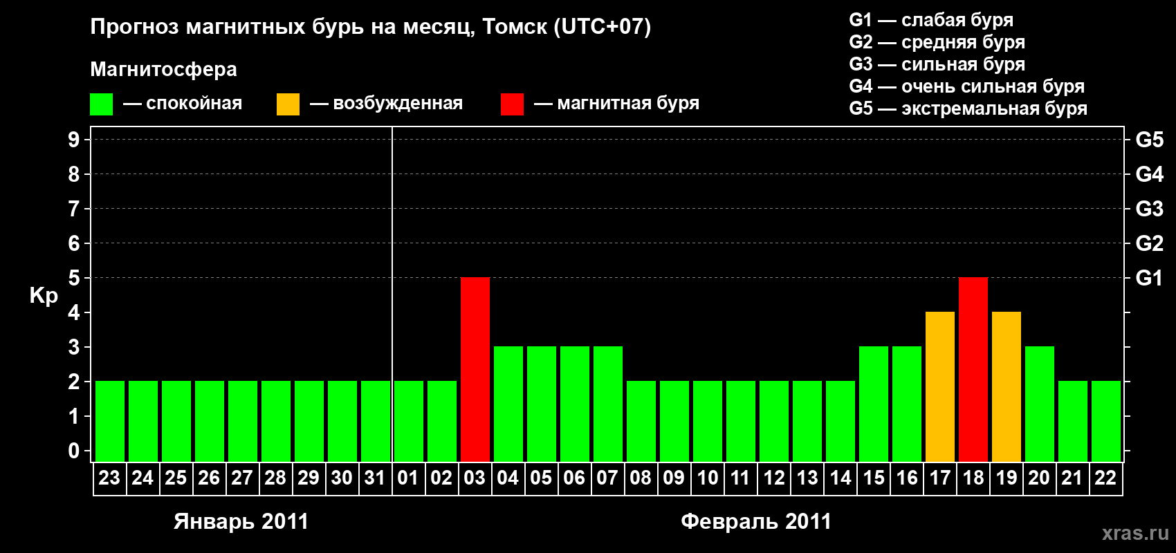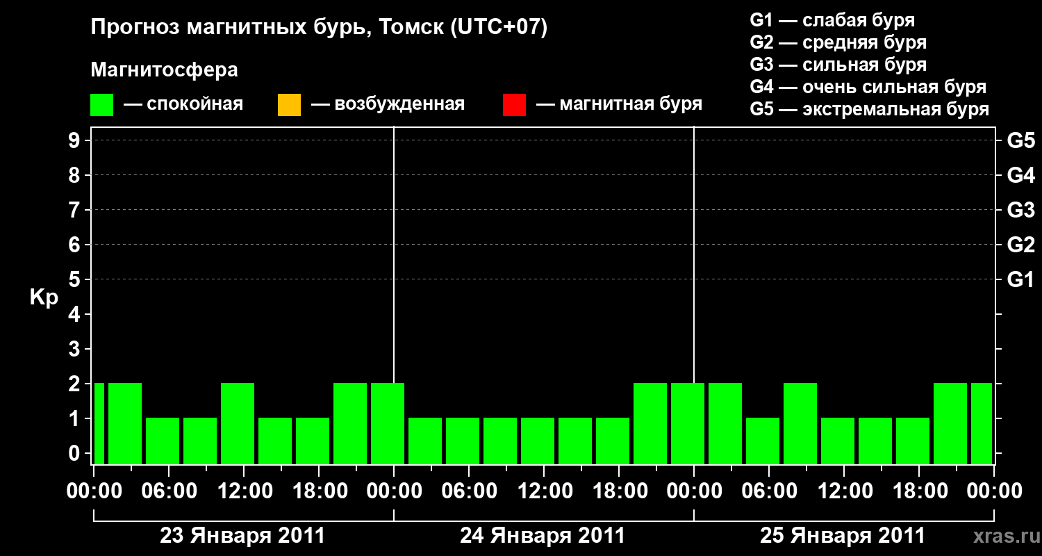 Прогноз магнитных бурь в Томске — 23 января 2011 года