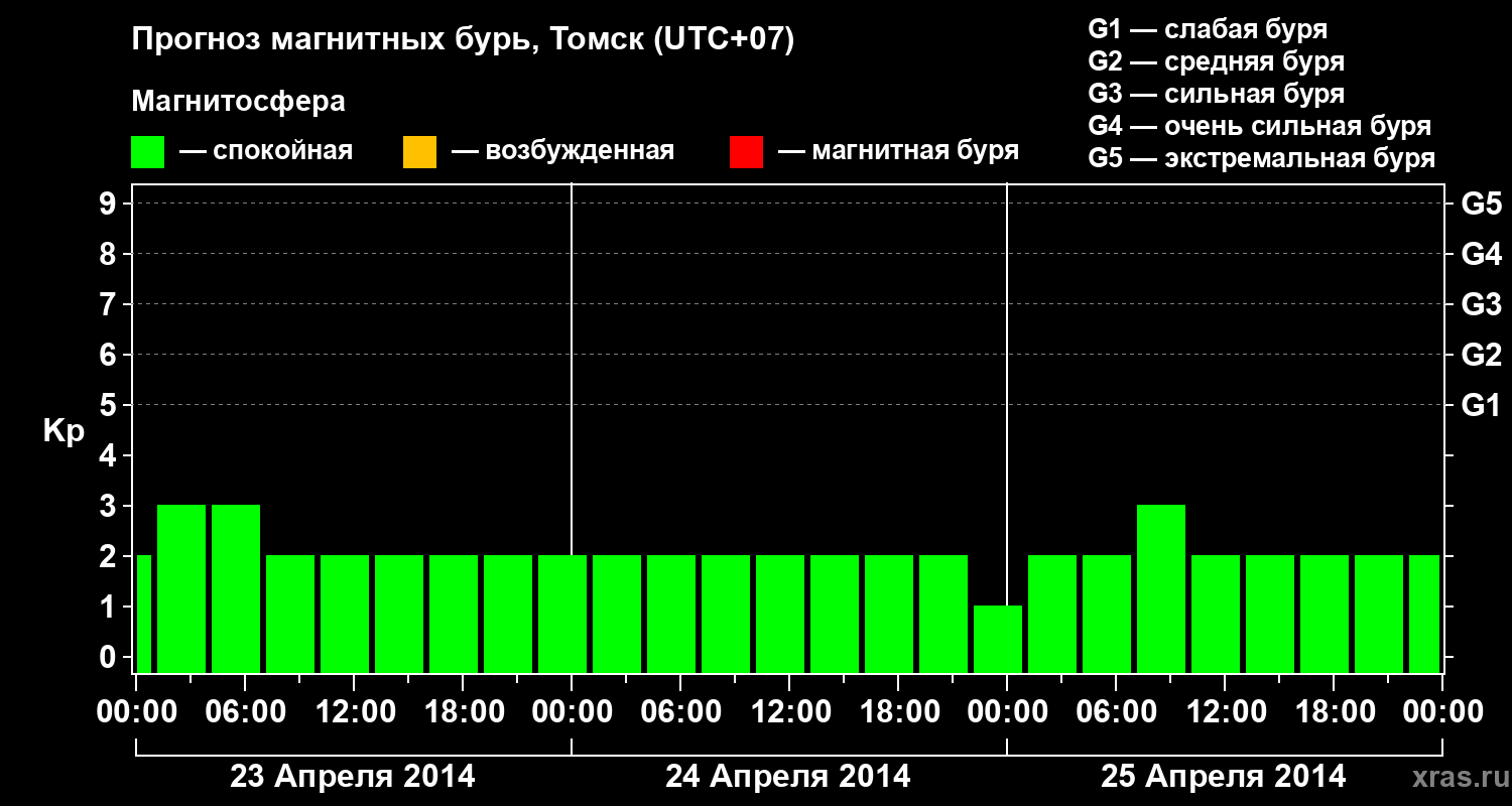 Прогноз магнитных бурь в Томске — 23 апреля 2014 года