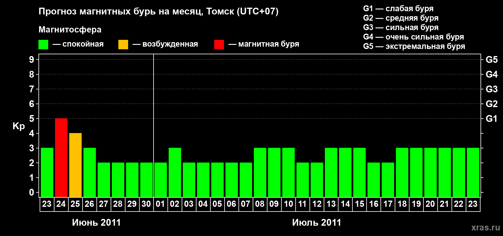 Прогноз магнитных бурь в Томске — 23 июня 2011 года