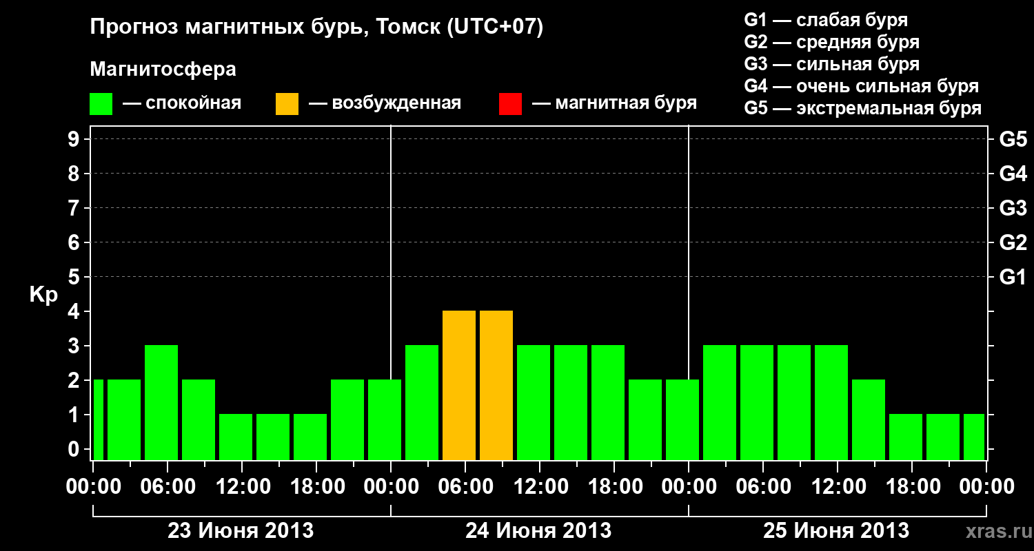 Прогноз магнитных бурь в Томске — 23 июня 2013 года