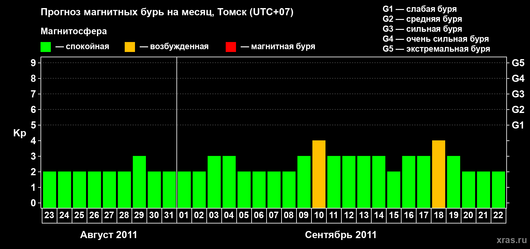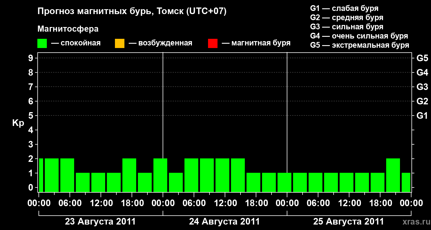 Прогноз магнитных бурь в Томске — 23 августа 2011 года