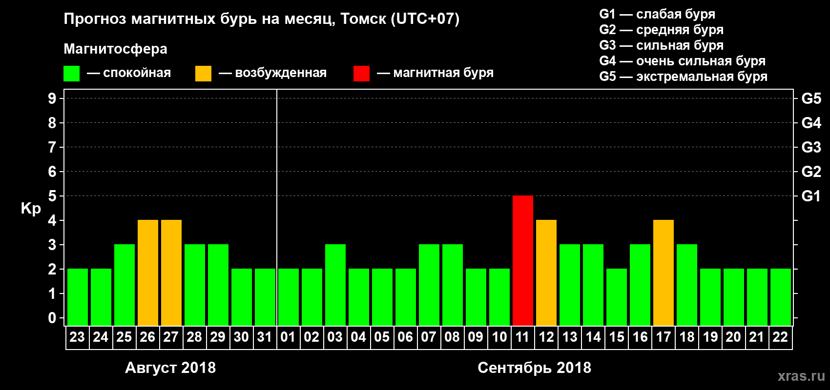Прогноз магнитных бурь в Томске — 23 августа 2018 года