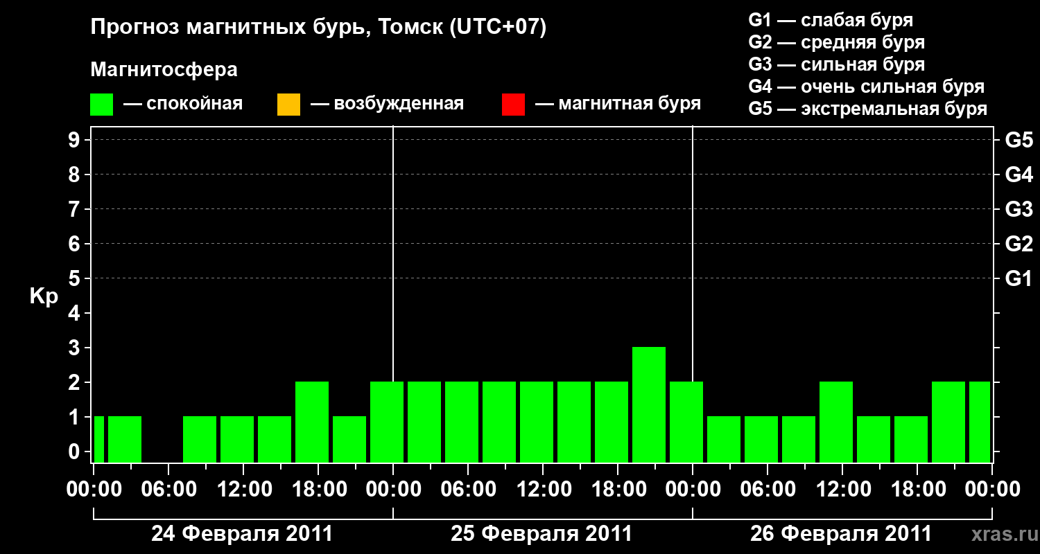 Прогноз магнитных бурь в Томске — 24 февраля 2011 года