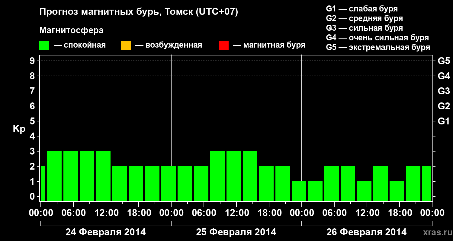 Прогноз магнитных бурь в Томске — 24 февраля 2014 года