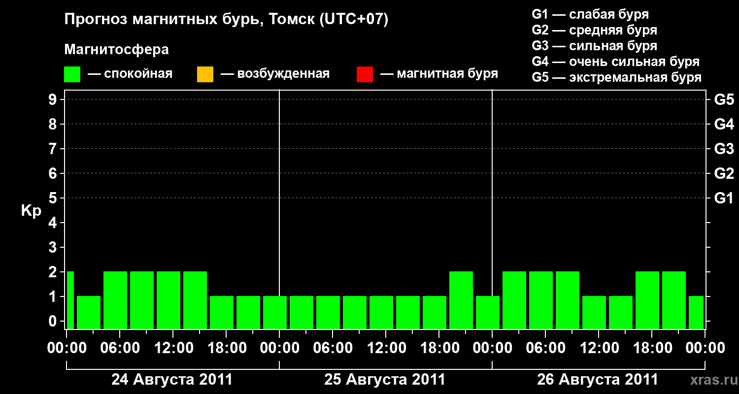 Прогноз магнитных бурь в Томске — 24 августа 2011 года