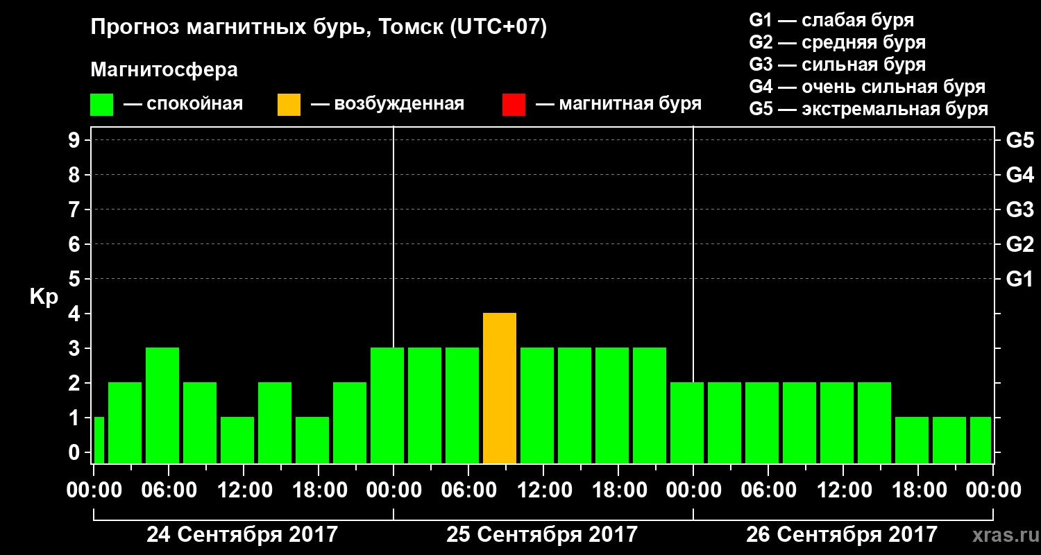 Прогноз магнитных бурь в Томске — 24 сентября 2017 года