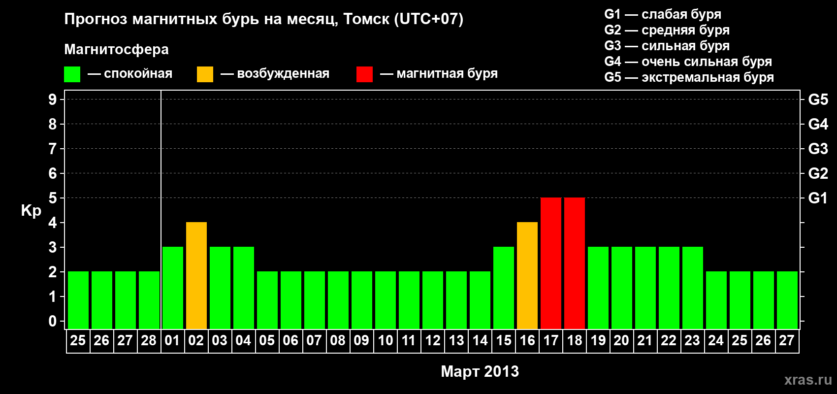 Прогноз магнитных бурь в Томске — 25 февраля 2013 года