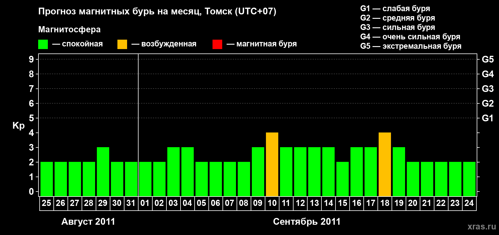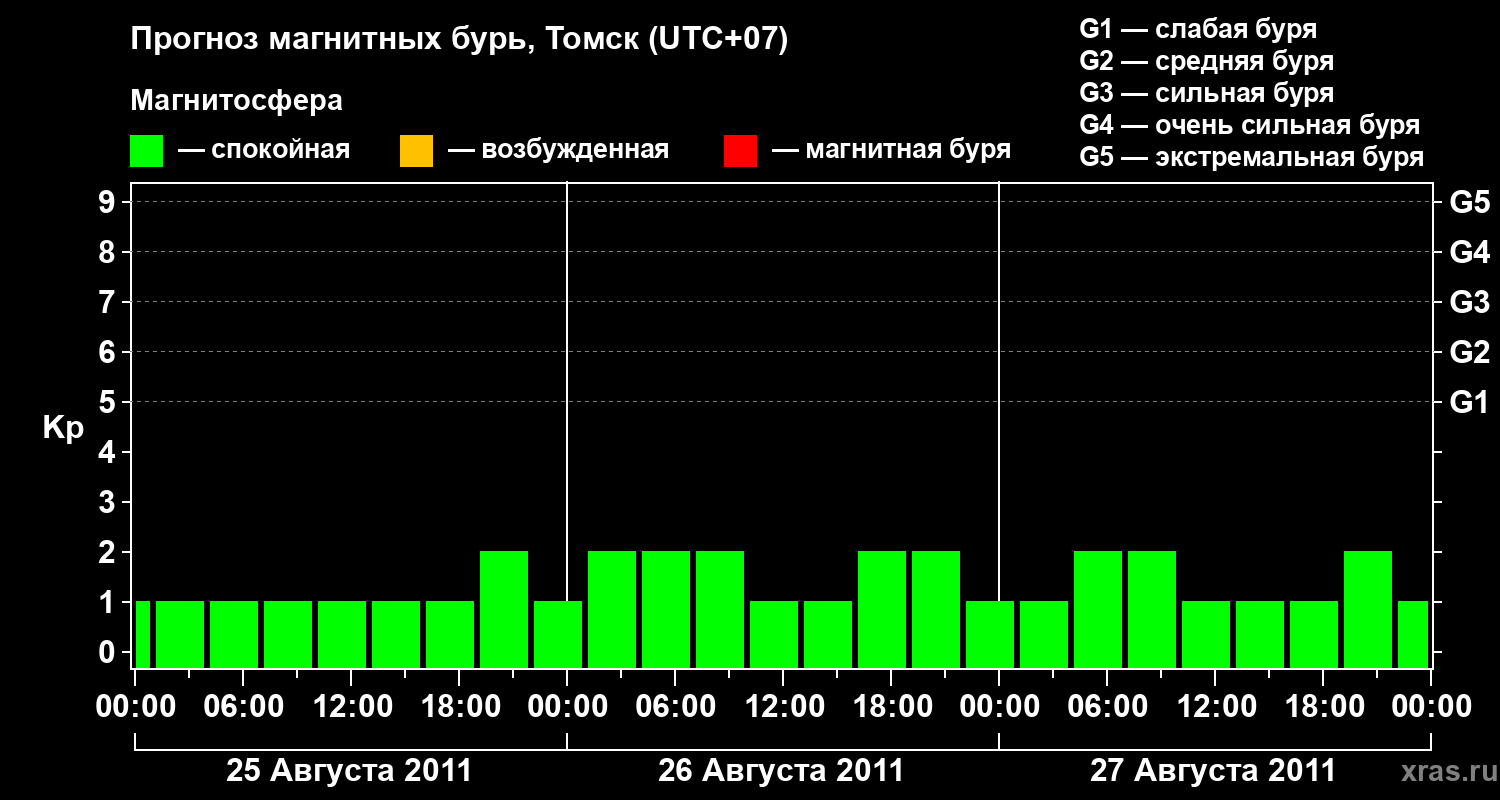 Прогноз магнитных бурь в Томске — 25 августа 2011 года