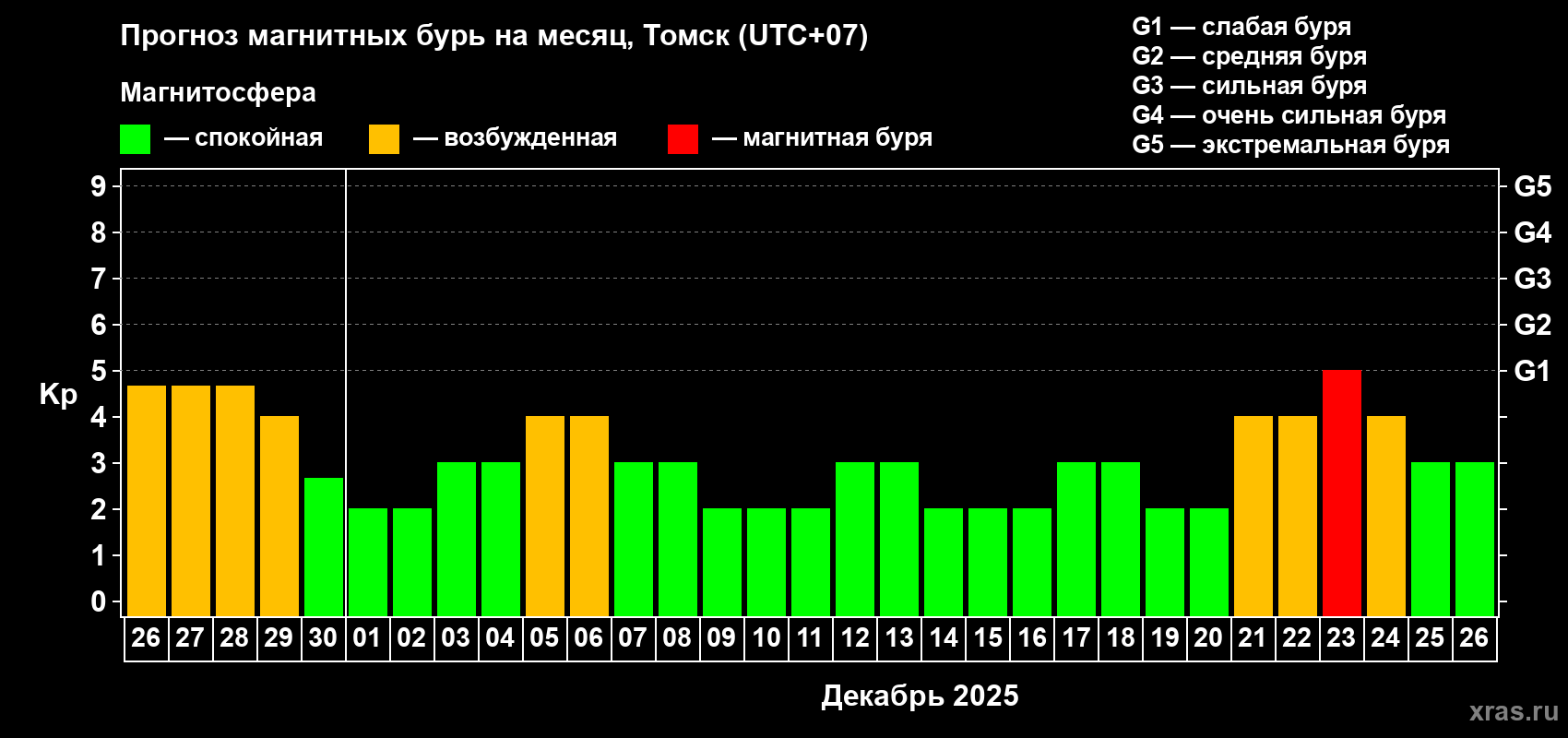 Прогноз магнитных бурь в Томске — 26 ноября 2025 года