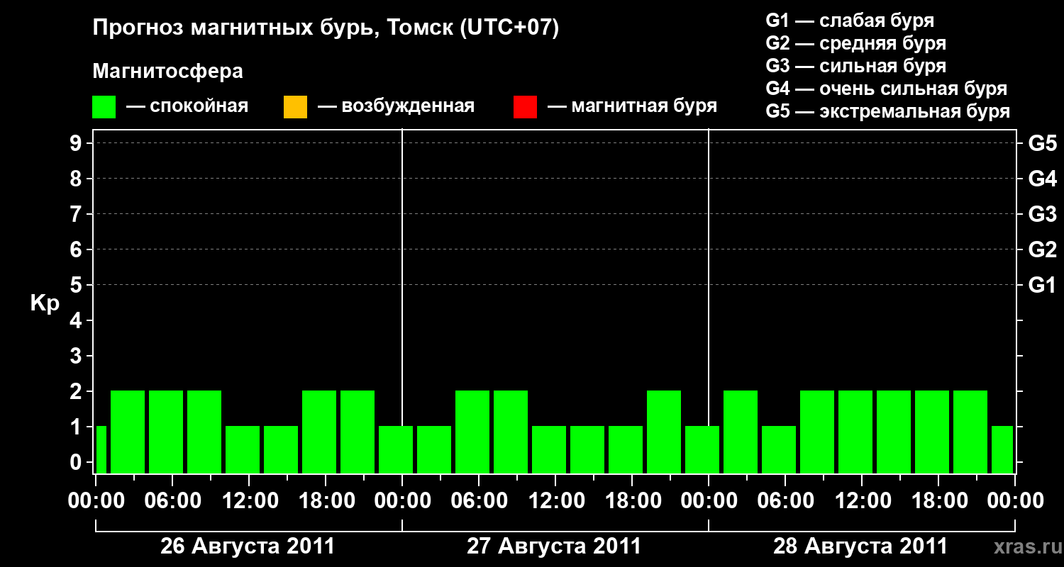 Прогноз магнитных бурь в Томске на 26 августа 2011 года