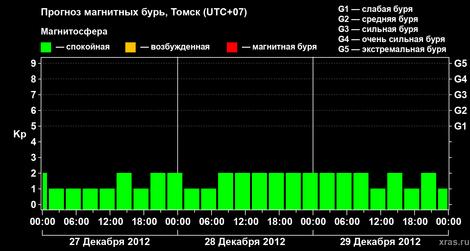 Прогноз магнитных бурь в Томске — 27 декабря 2012 года
