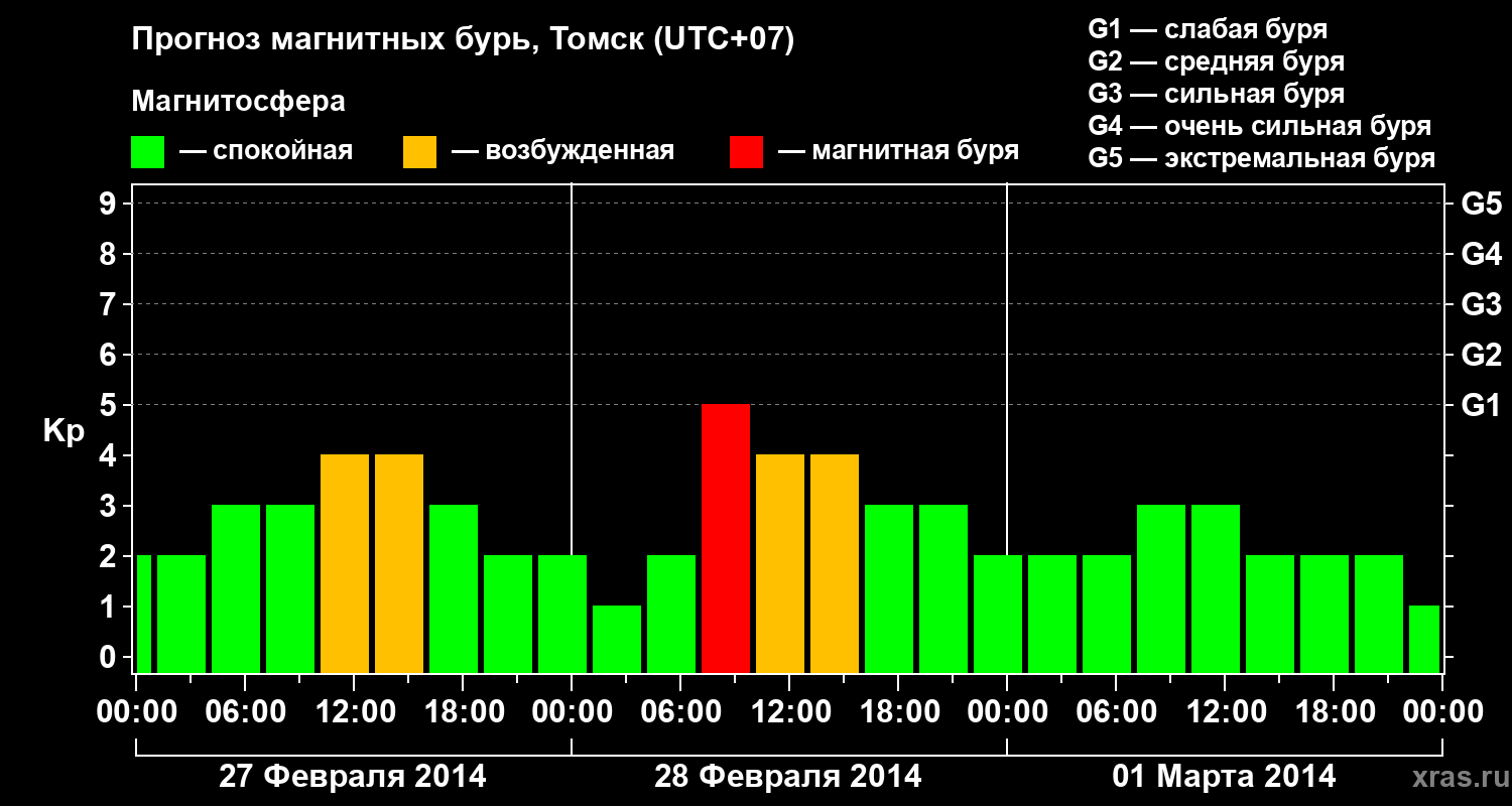 Прогноз магнитных бурь в Томске — 27 февраля 2014 года