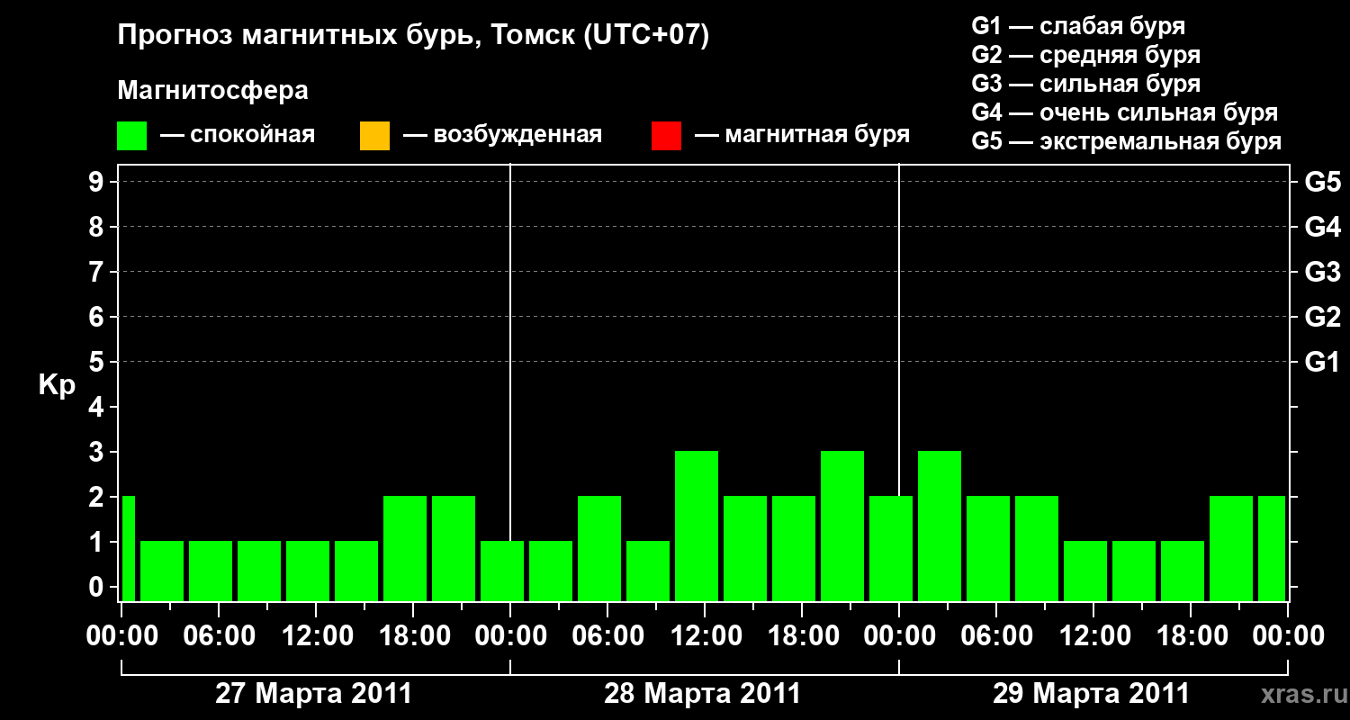 Прогноз магнитных бурь в Томске — 27 марта 2011 года