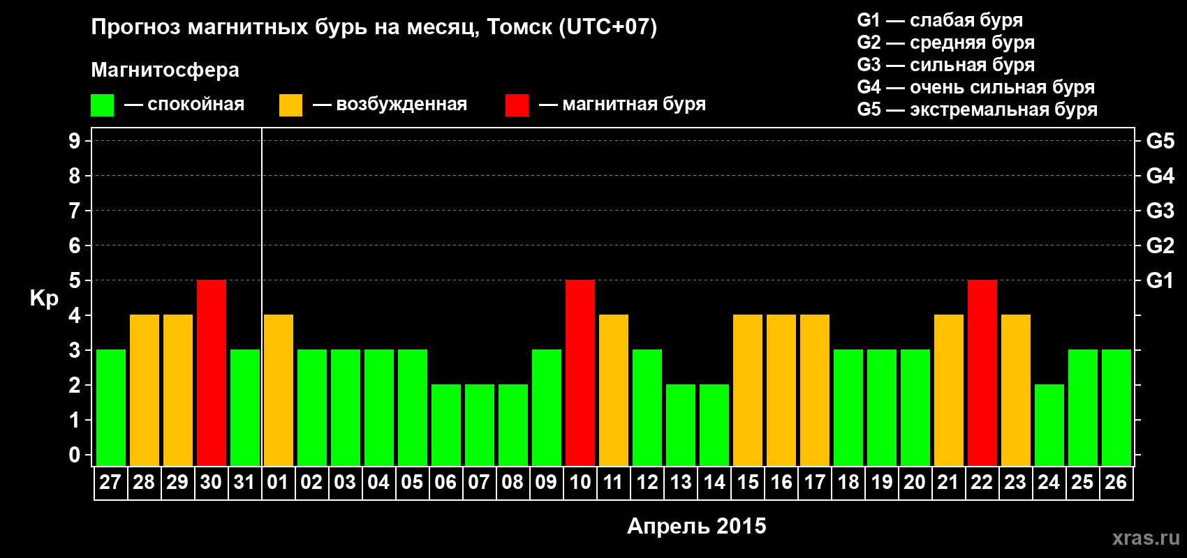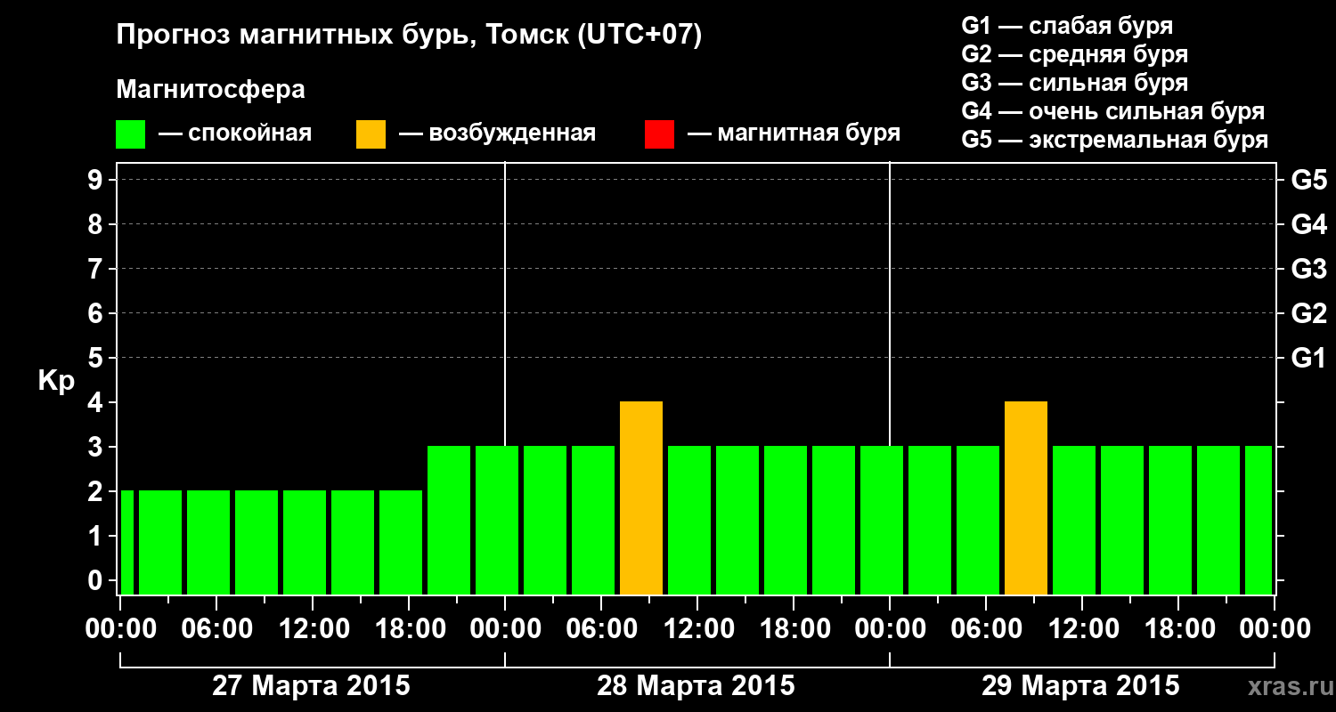 Прогноз магнитных бурь в Томске — 27 марта 2015 года