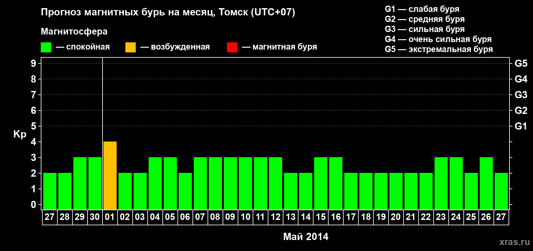 Прогноз магнитных бурь в Томске — 27 апреля 2014 года
