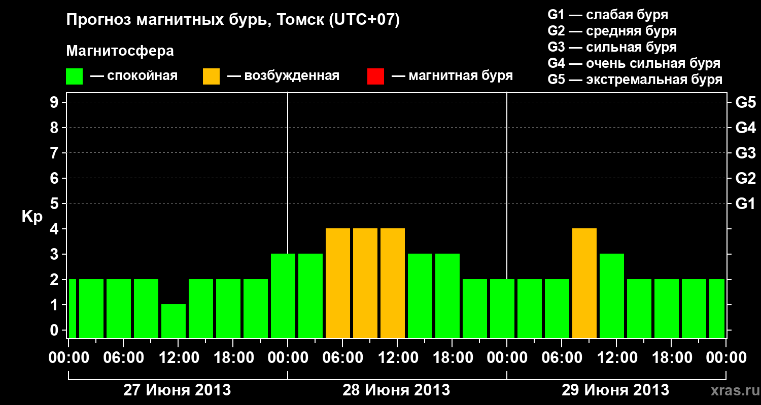 Прогноз магнитных бурь в Томске — 27 июня 2013 года