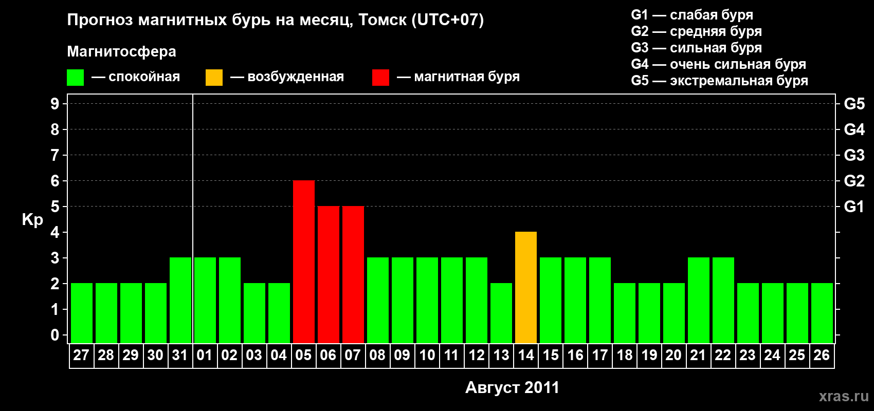 Прогноз магнитных бурь в Томске — 27 июля 2011 года