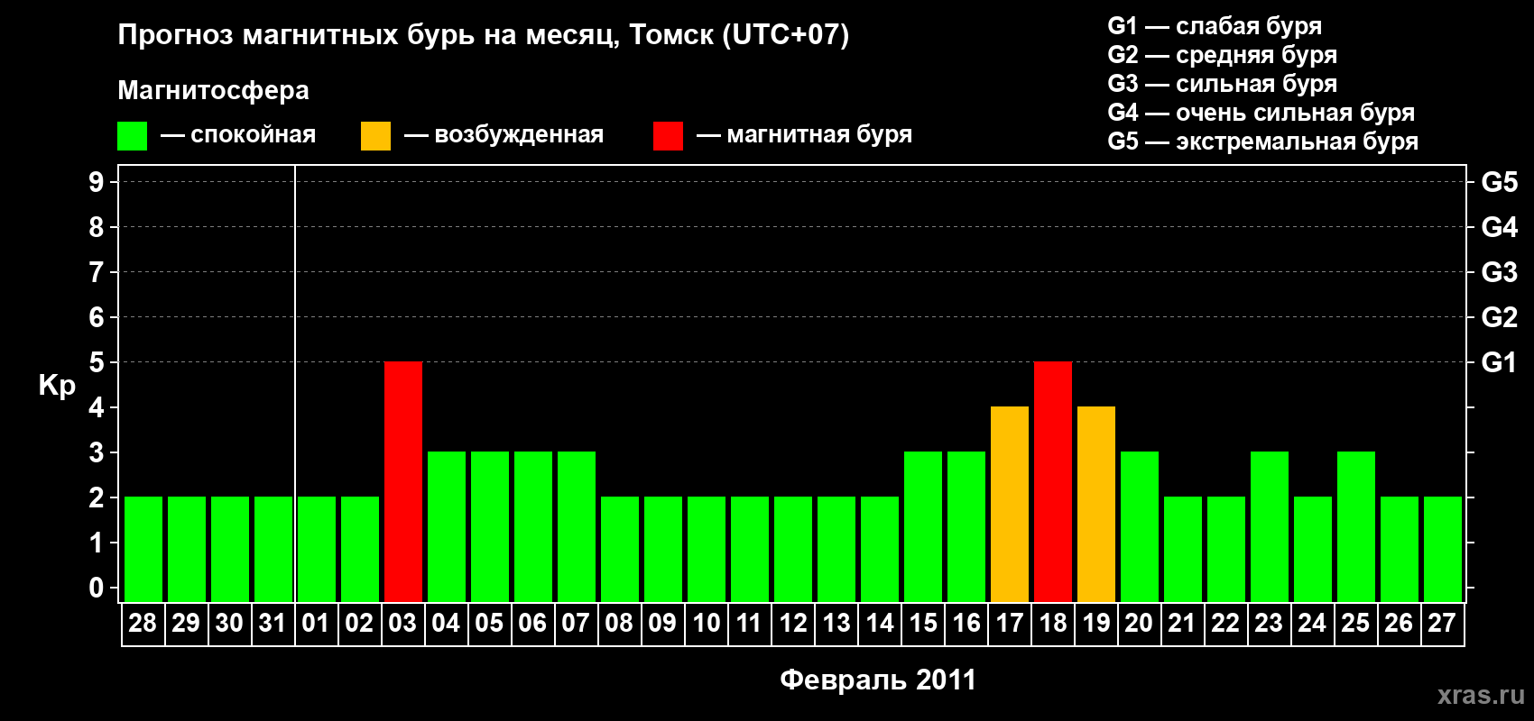 Прогноз магнитных бурь в Томске — 28 января 2011 года
