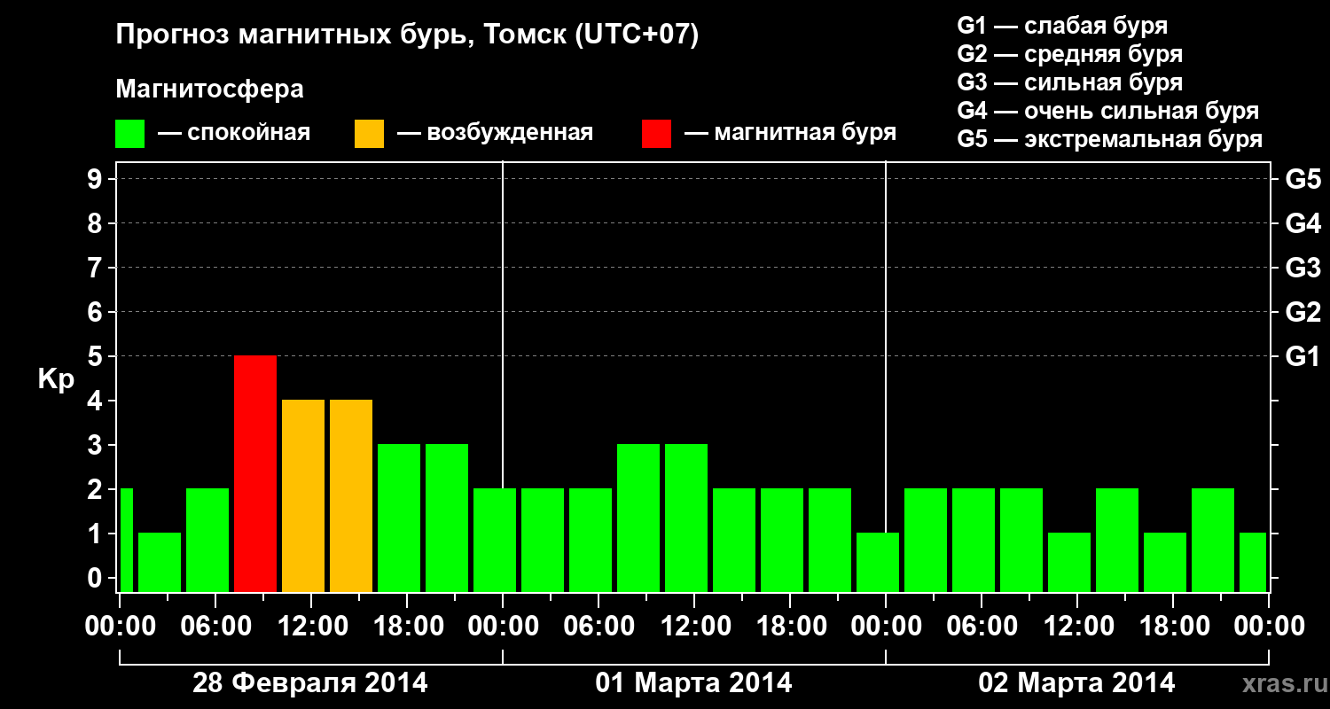 Прогноз магнитных бурь в Томске — 28 февраля 2014 года