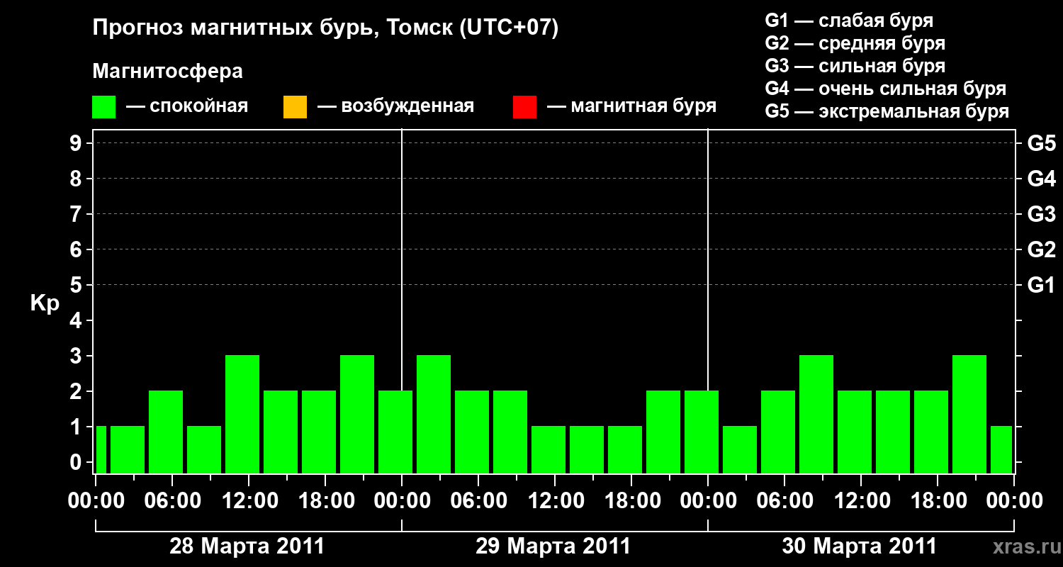 Прогноз магнитных бурь в Томске — 28 марта 2011 года