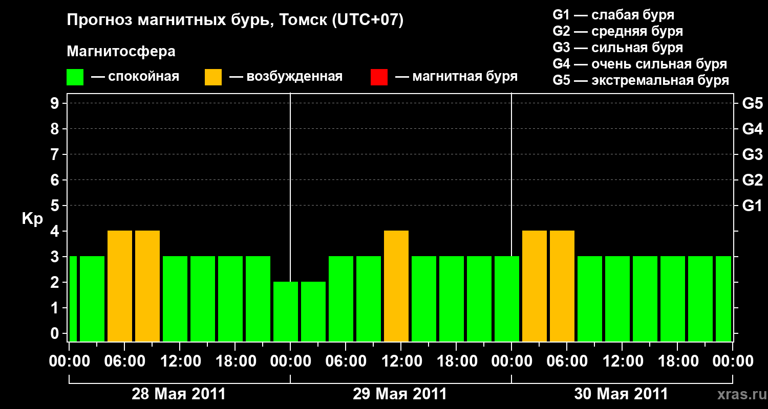 Прогноз магнитных бурь в Томске — 28 мая 2011 года