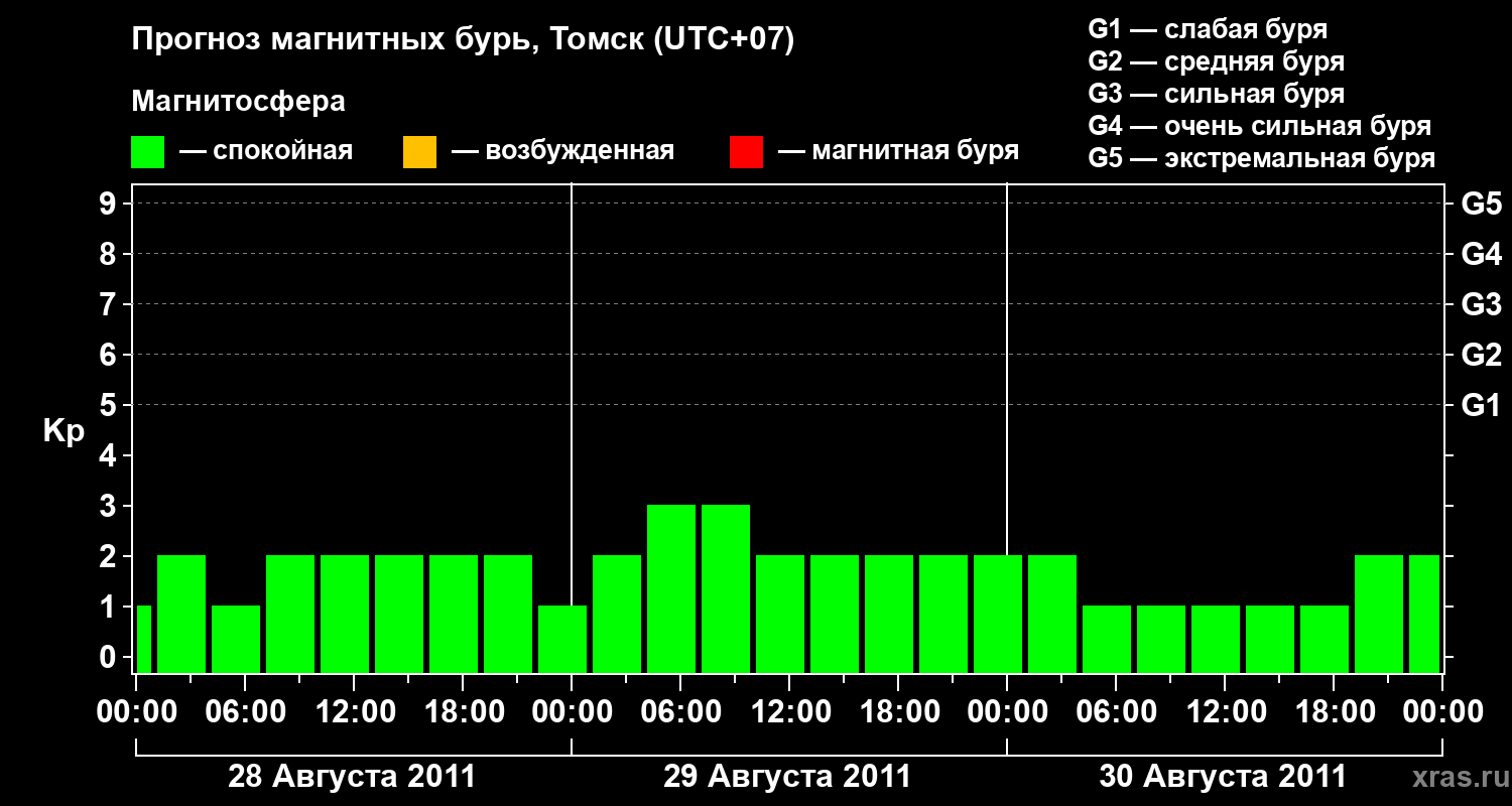 Прогноз магнитных бурь в Томске — 28 августа 2011 года