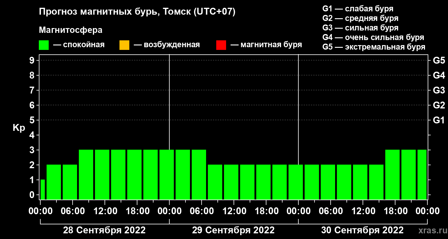 Прогноз магнитных бурь в Томске на 28 сентября 2022 года