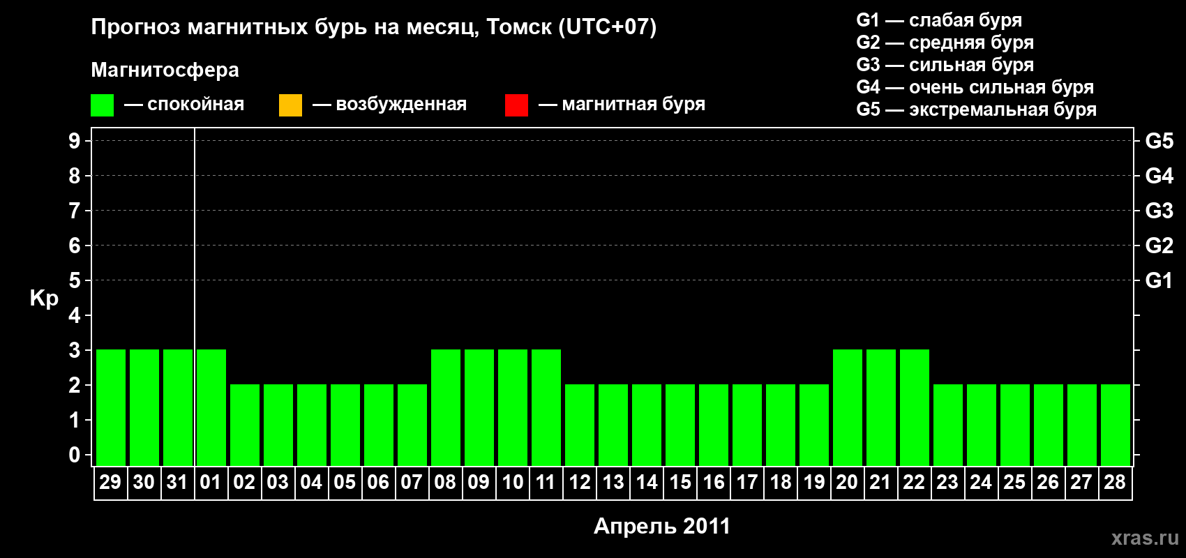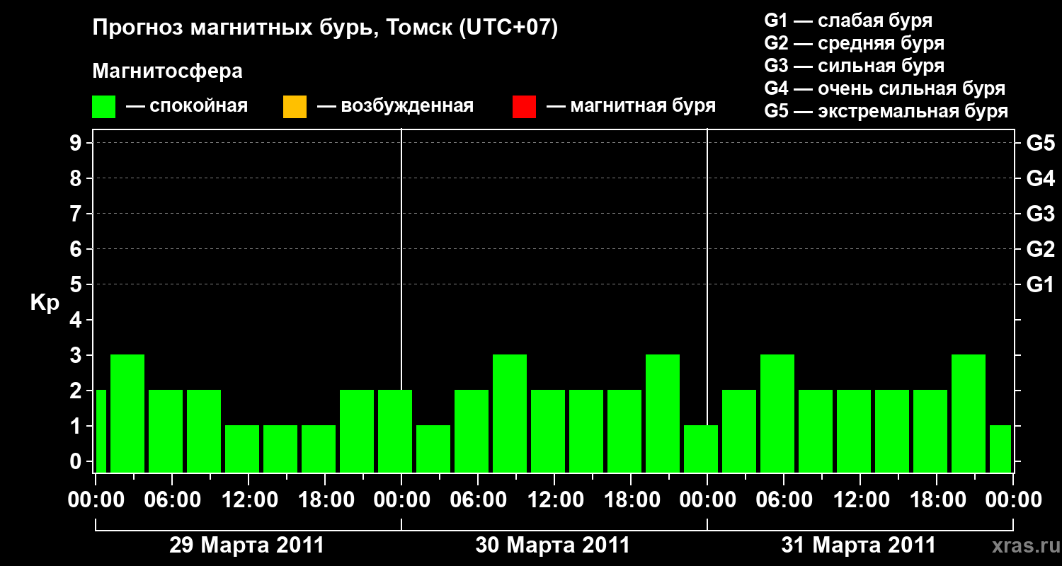 Прогноз магнитных бурь в Томске — 29 марта 2011 года