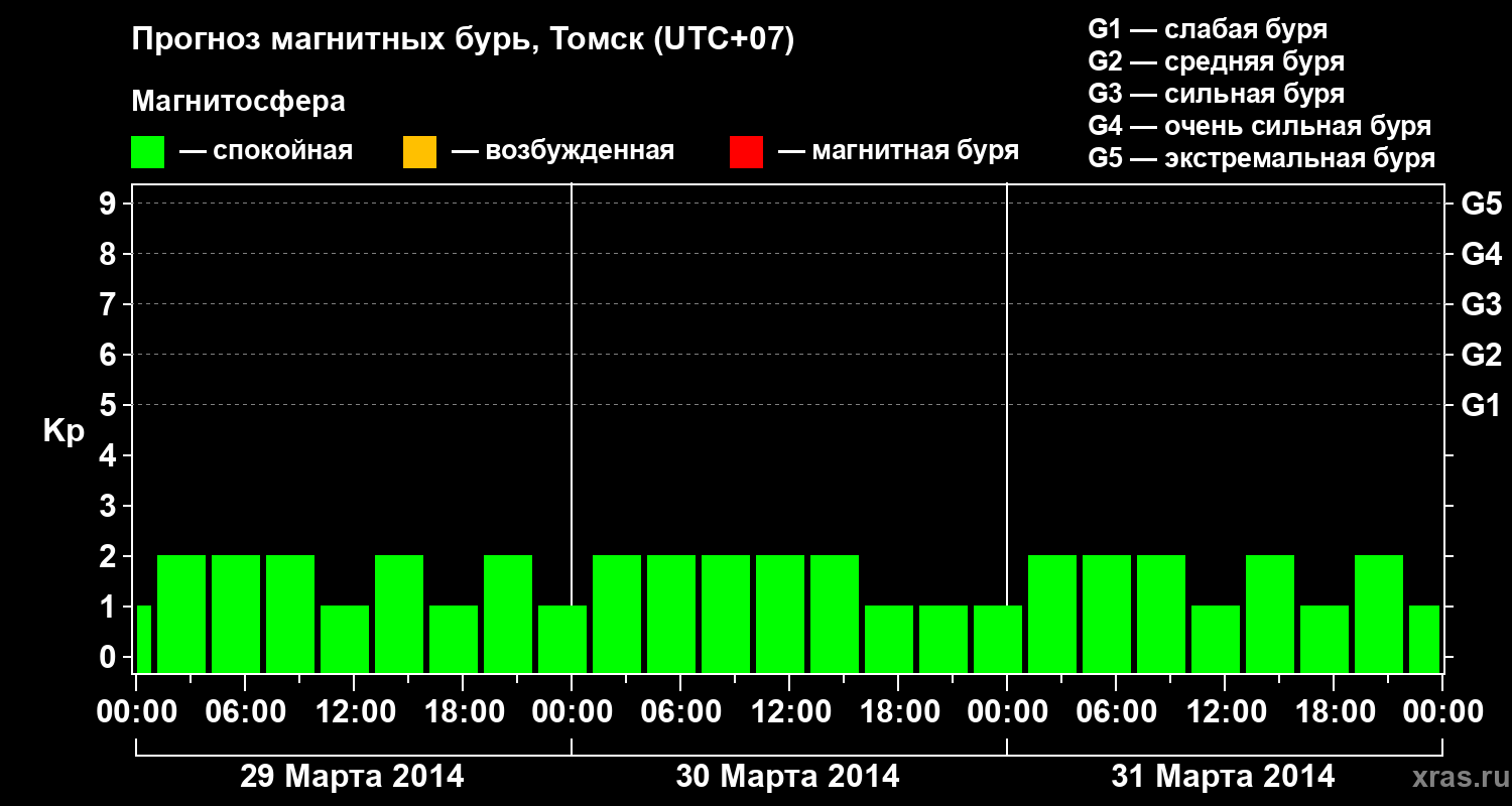 Прогноз магнитных бурь в Томске на 29 марта 2014 года