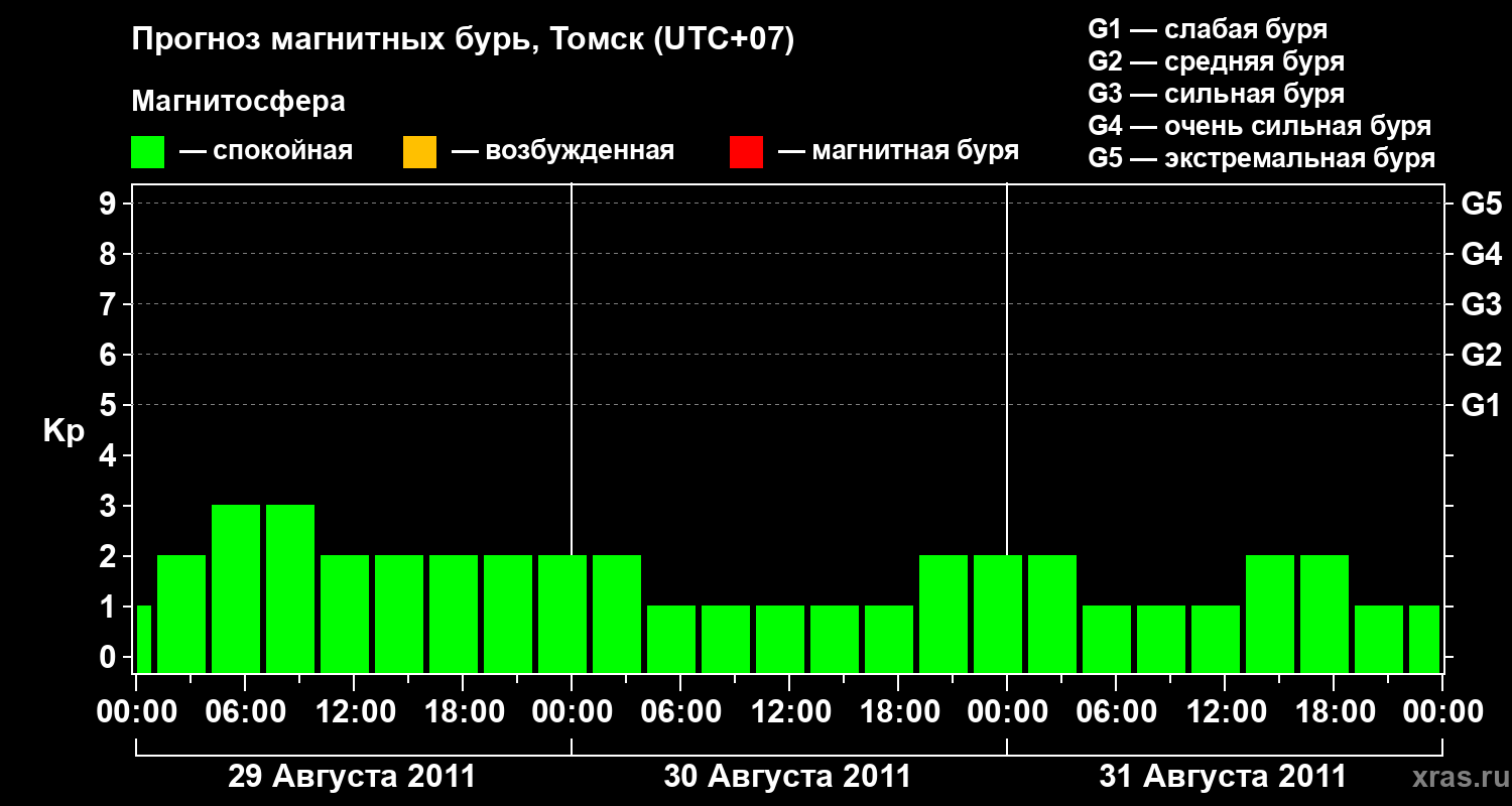 Прогноз магнитных бурь в Томске — 29 августа 2011 года