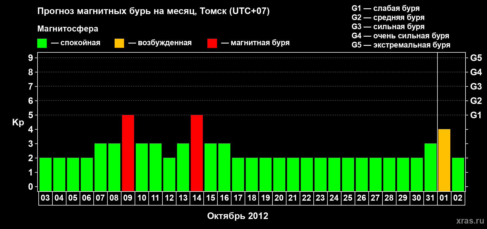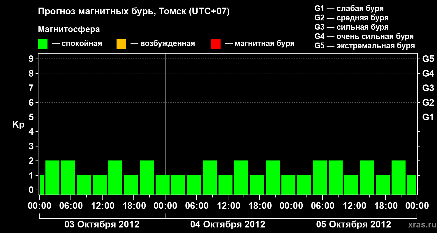 Прогноз магнитных бурь в Томске — 3 октября 2012 года