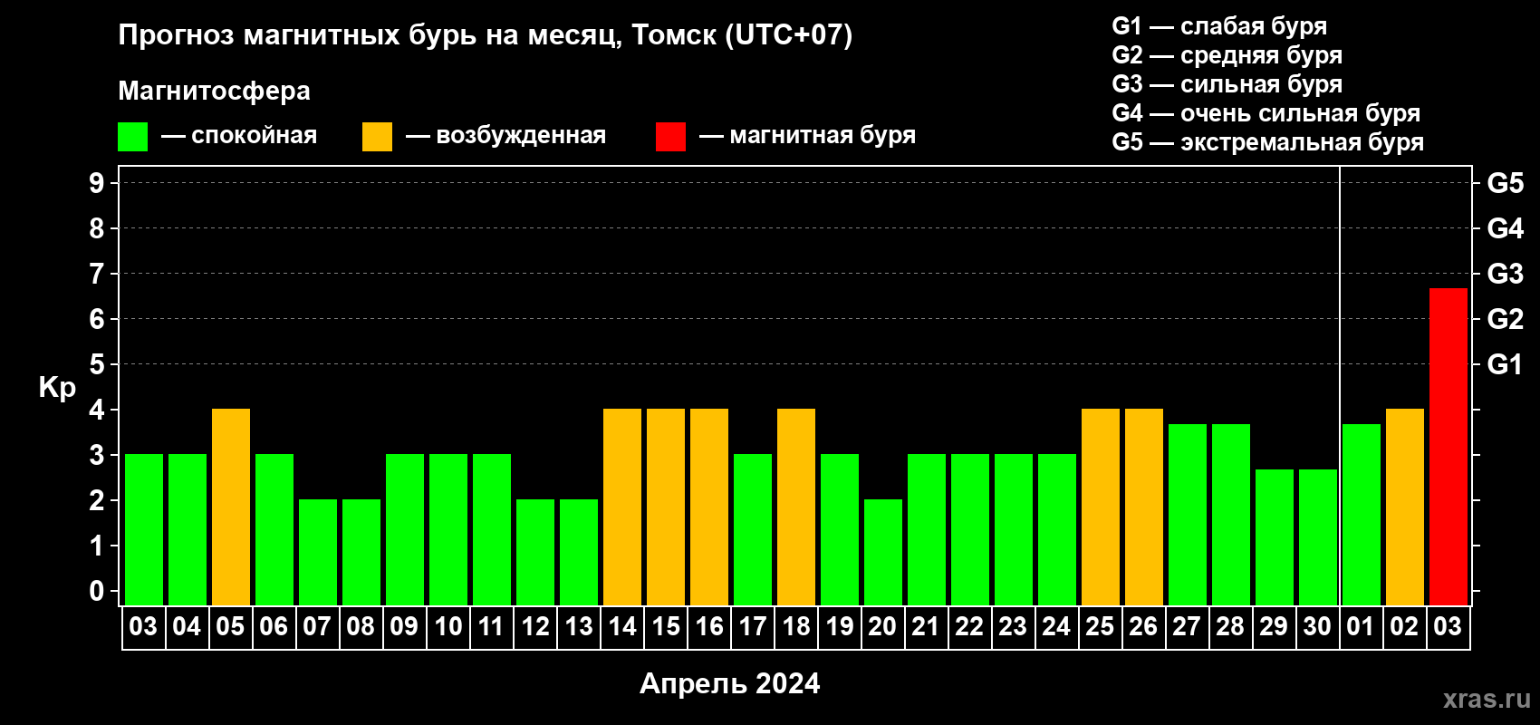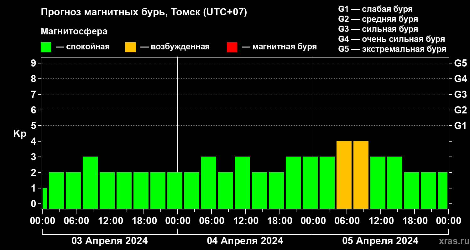 Прогноз магнитных бурь в Томске — 3 апреля 2024 года