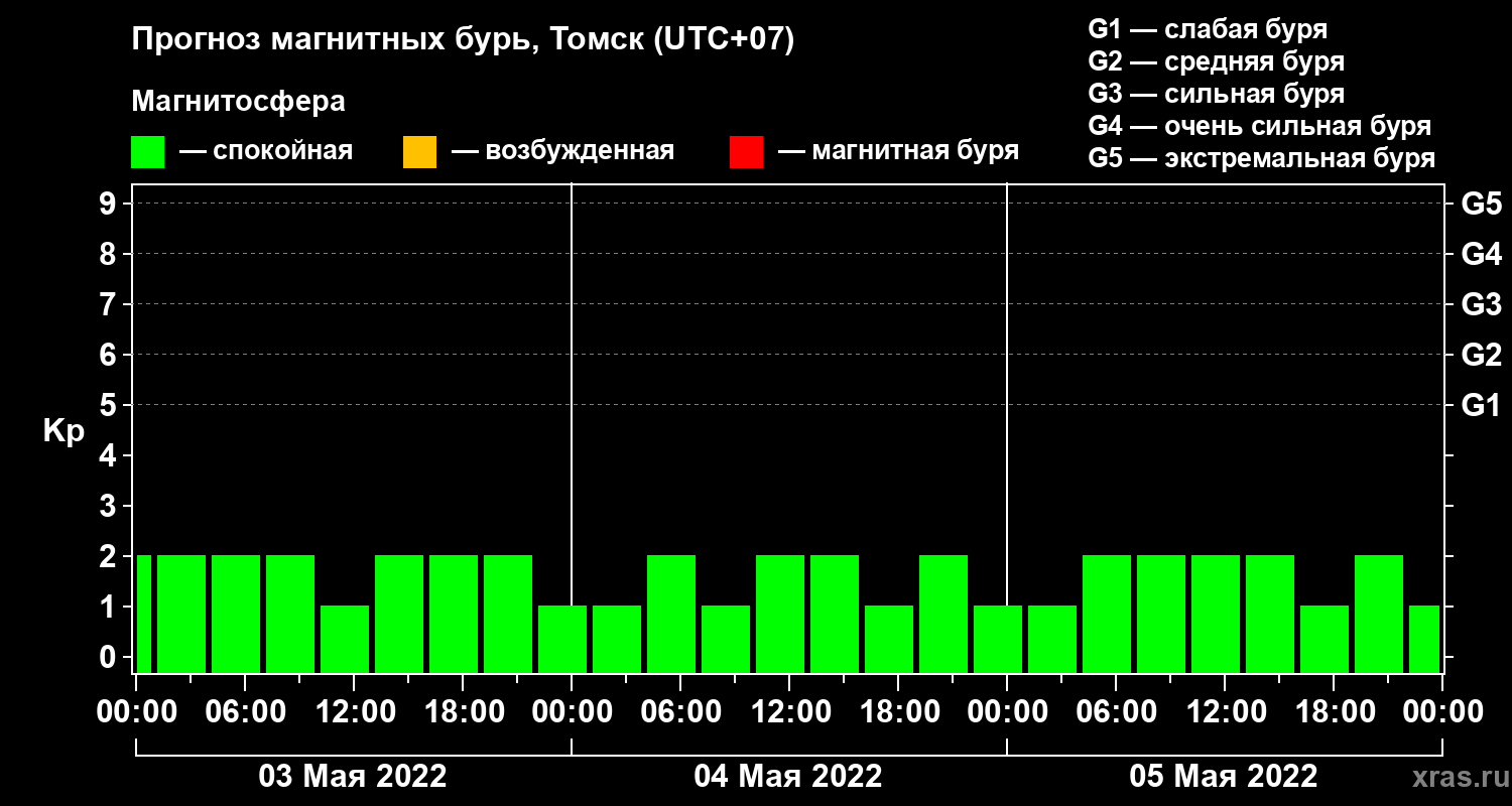 Прогноз магнитных бурь в Томске — 3 мая 2022 года