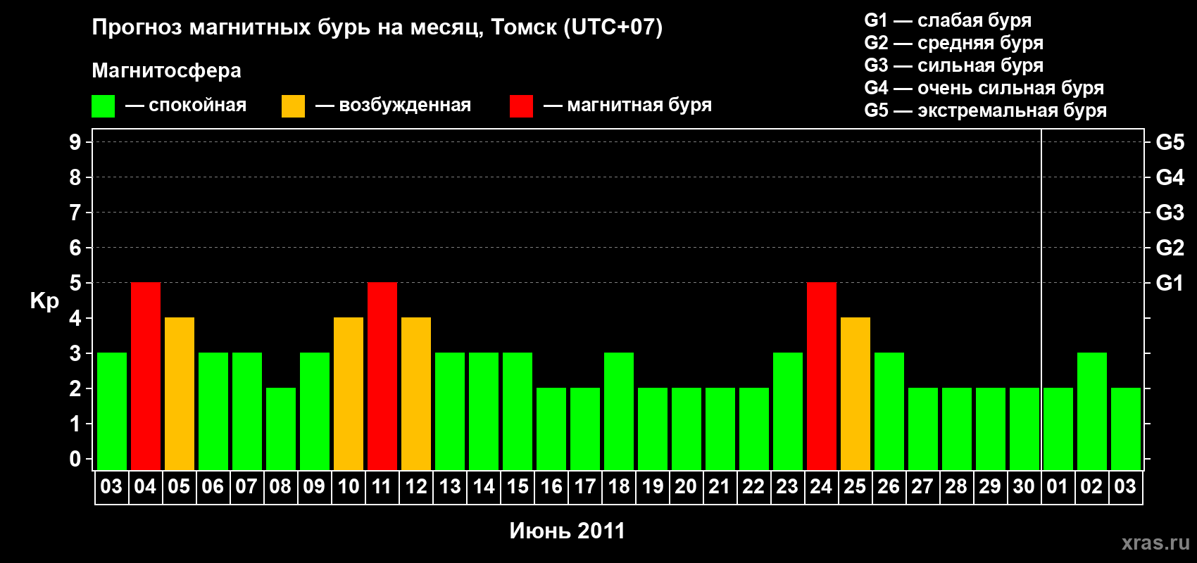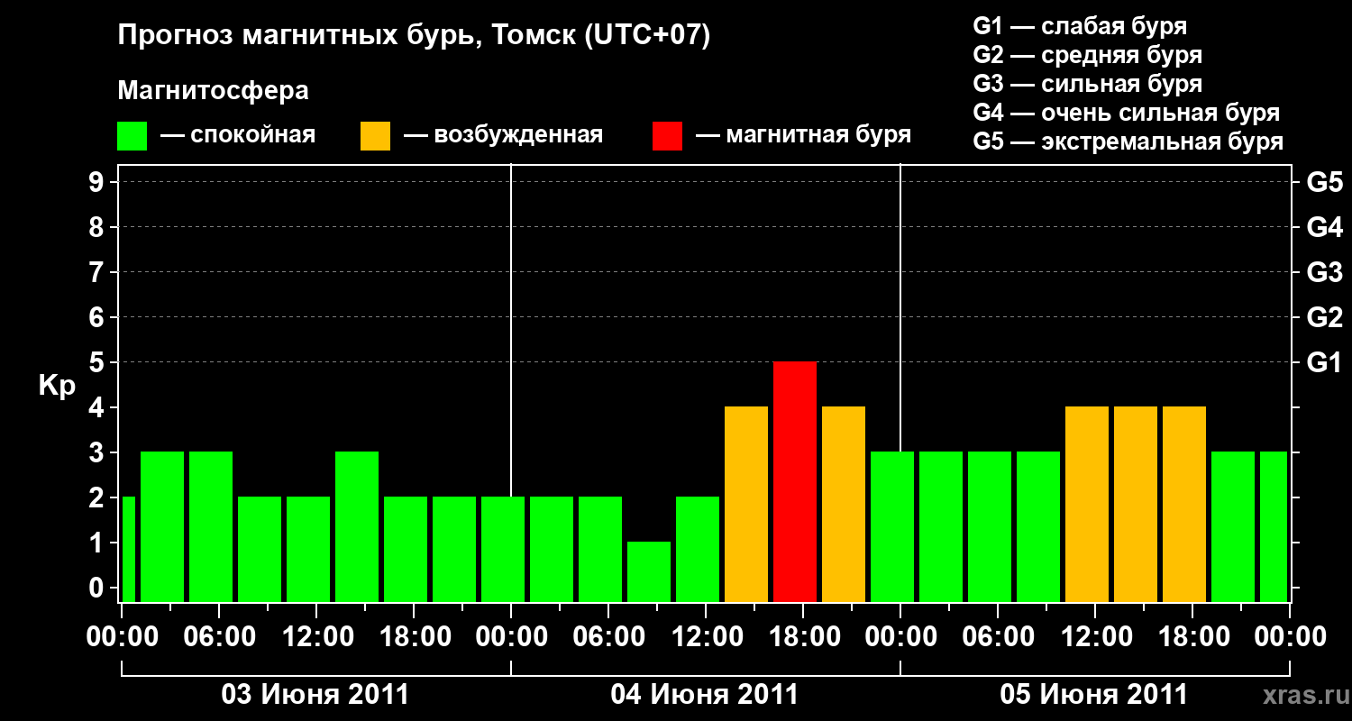 Прогноз магнитных бурь в Томске — 3 июня 2011 года