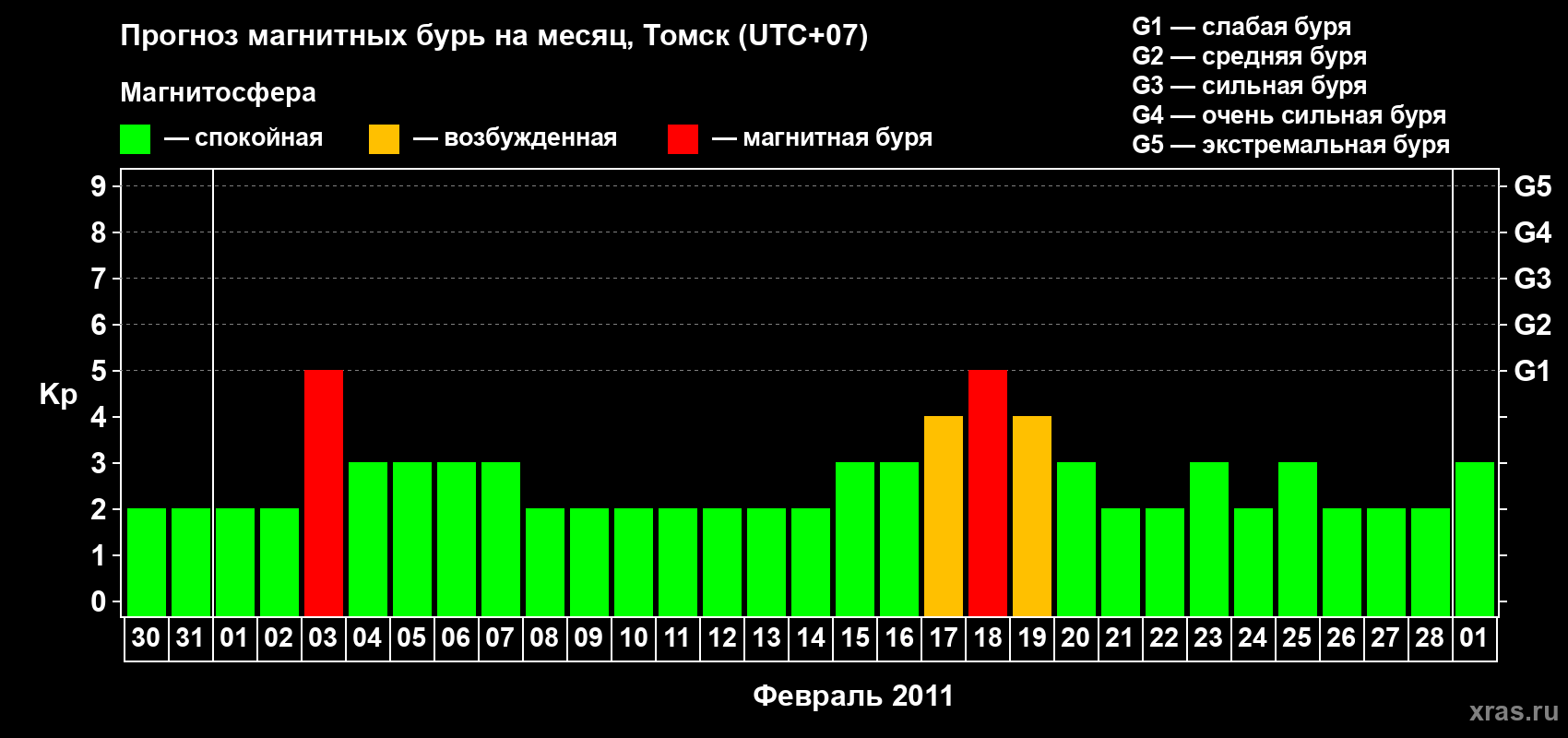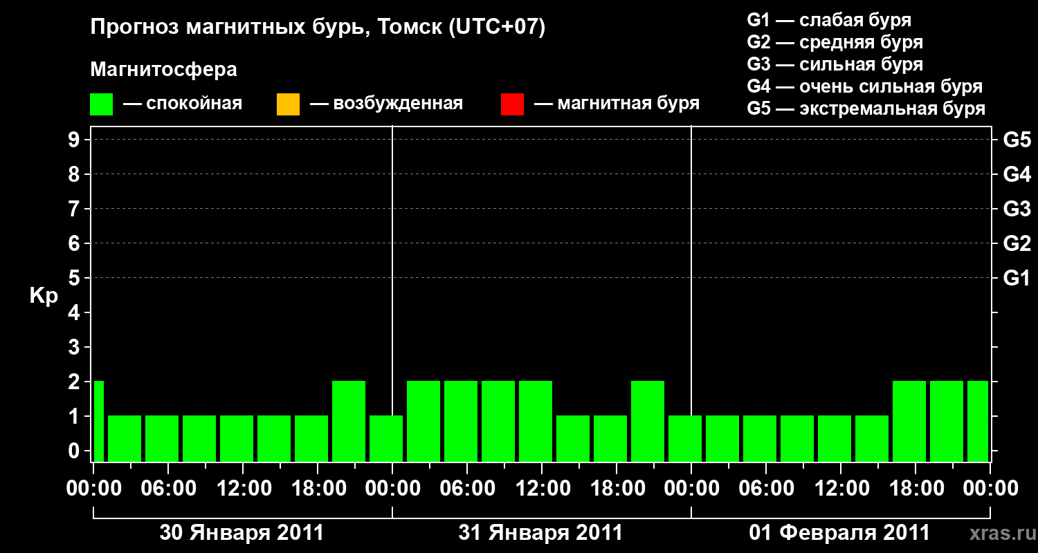Прогноз магнитных бурь в Томске — 30 января 2011 года