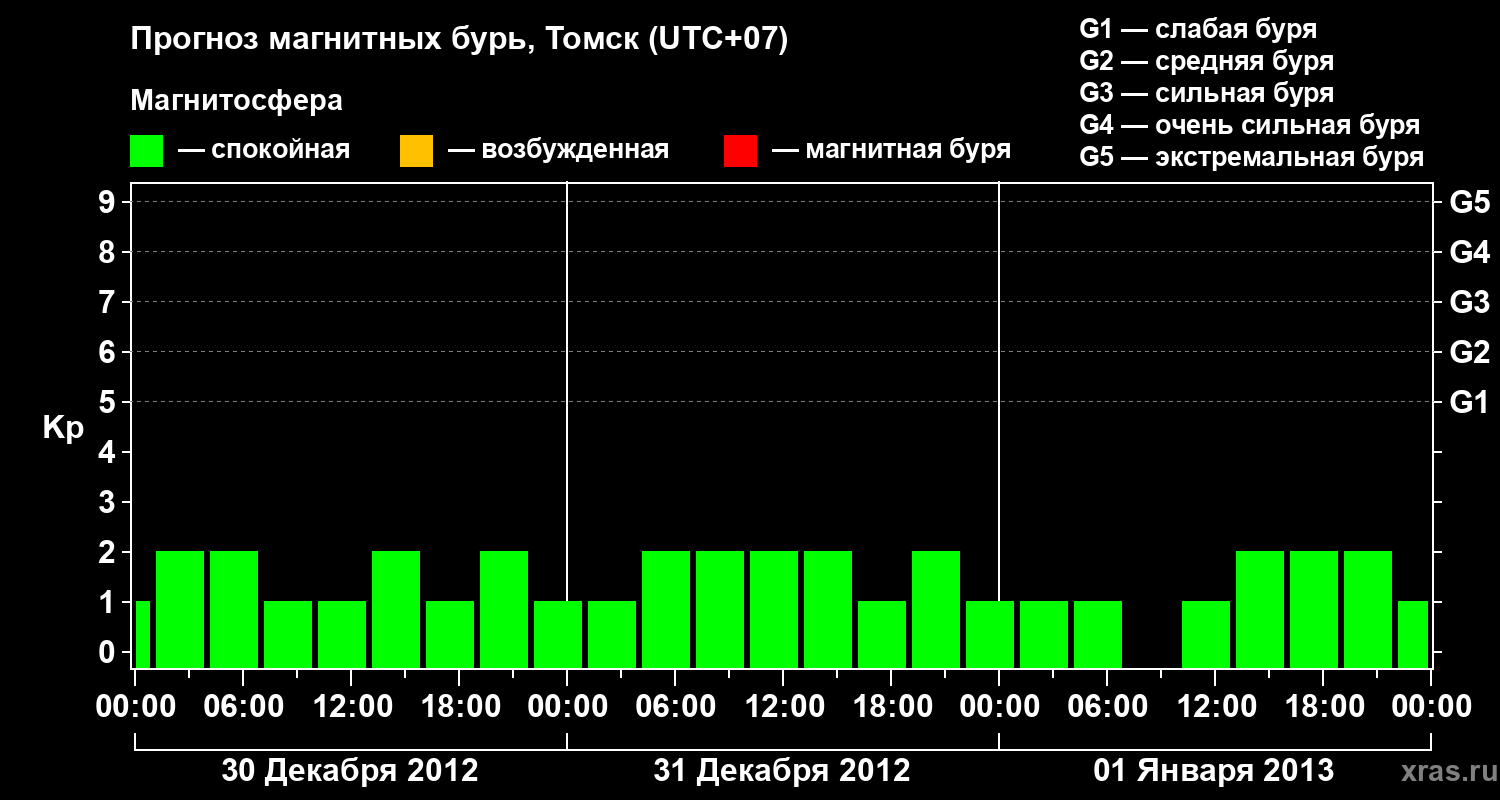 Прогноз магнитных бурь в Томске — 30 декабря 2012 года