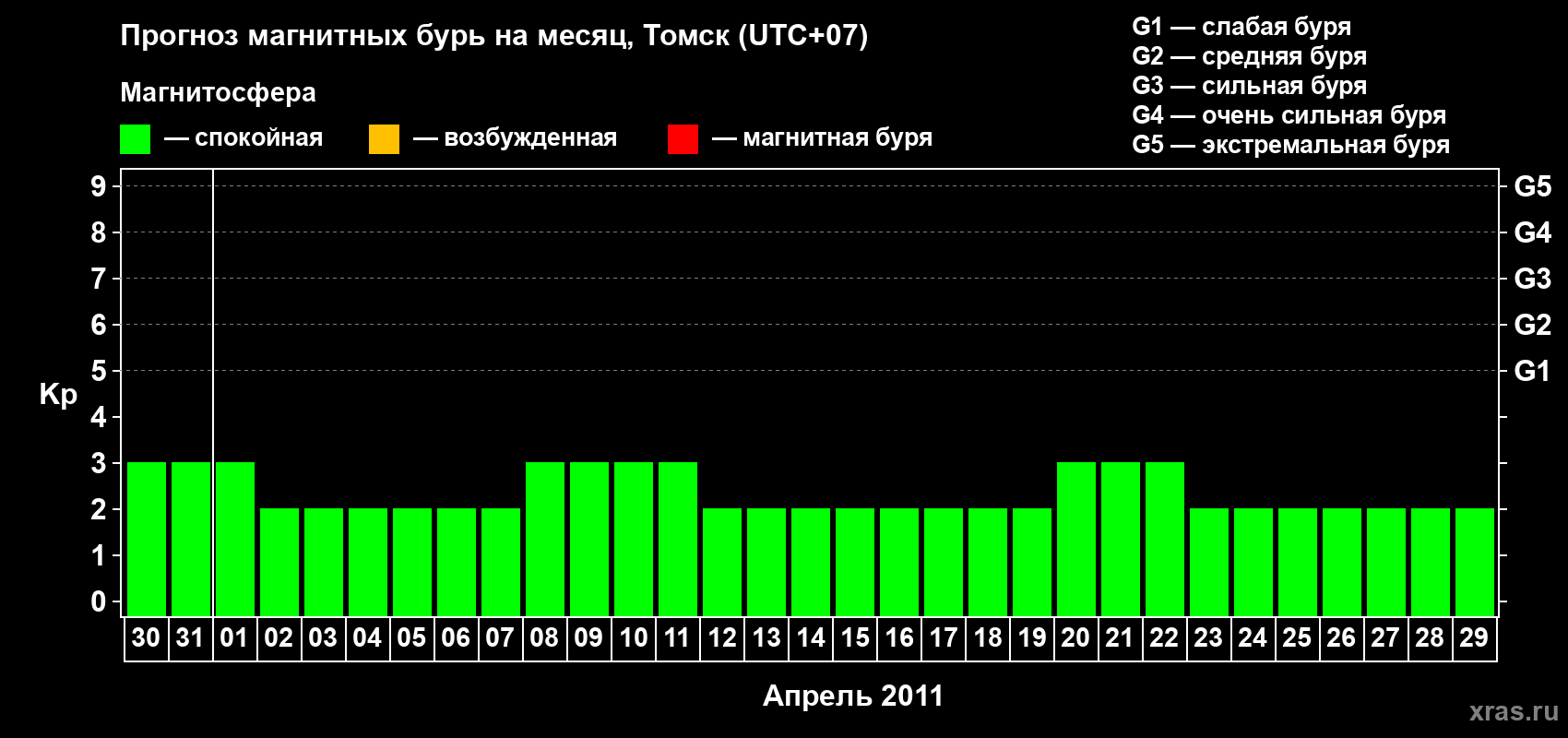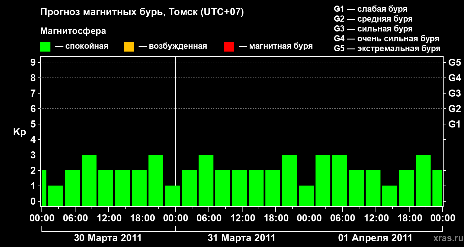 Прогноз магнитных бурь в Томске — 30 марта 2011 года
