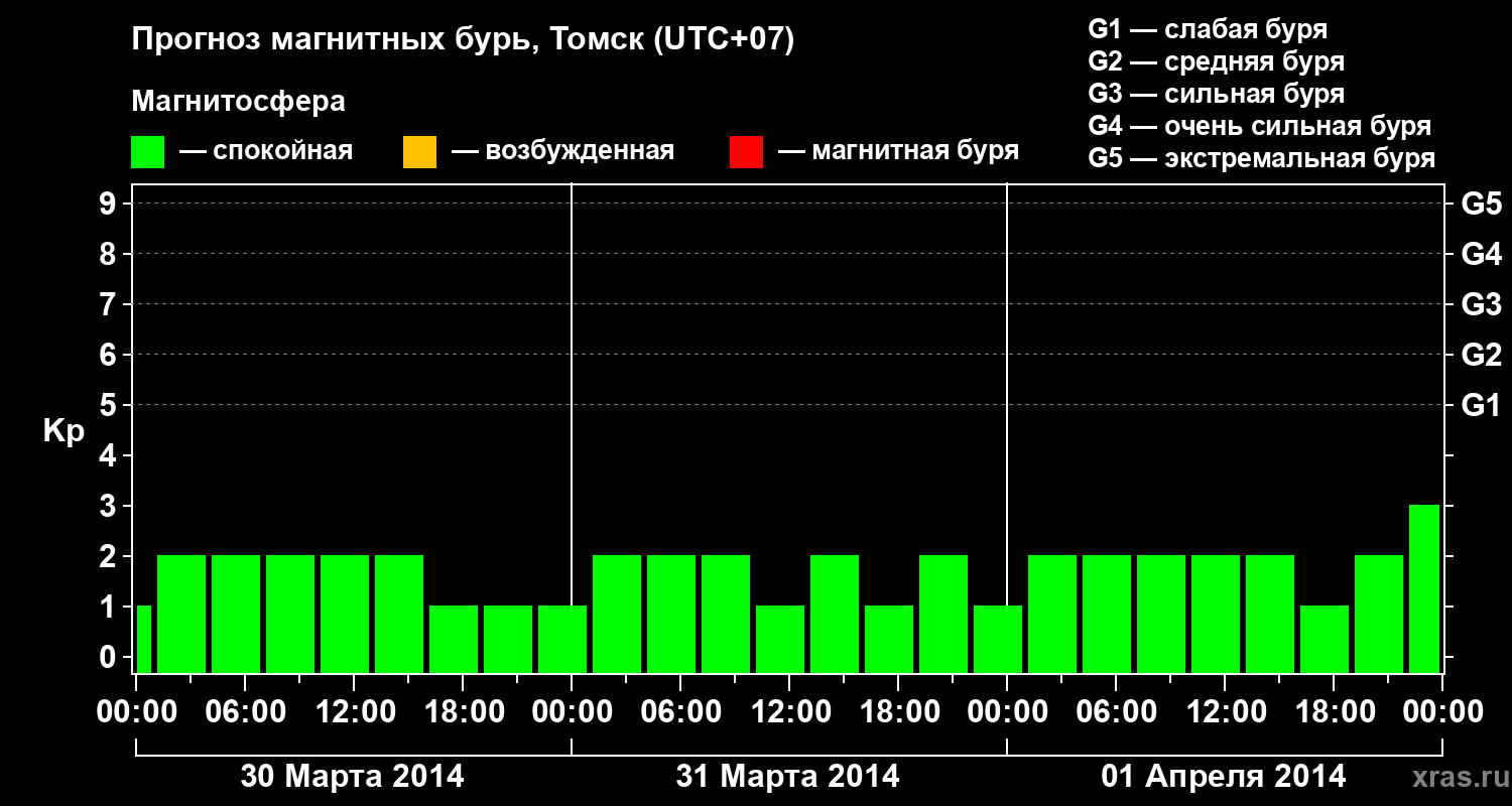 Прогноз магнитных бурь в Томске — 30 марта 2014 года