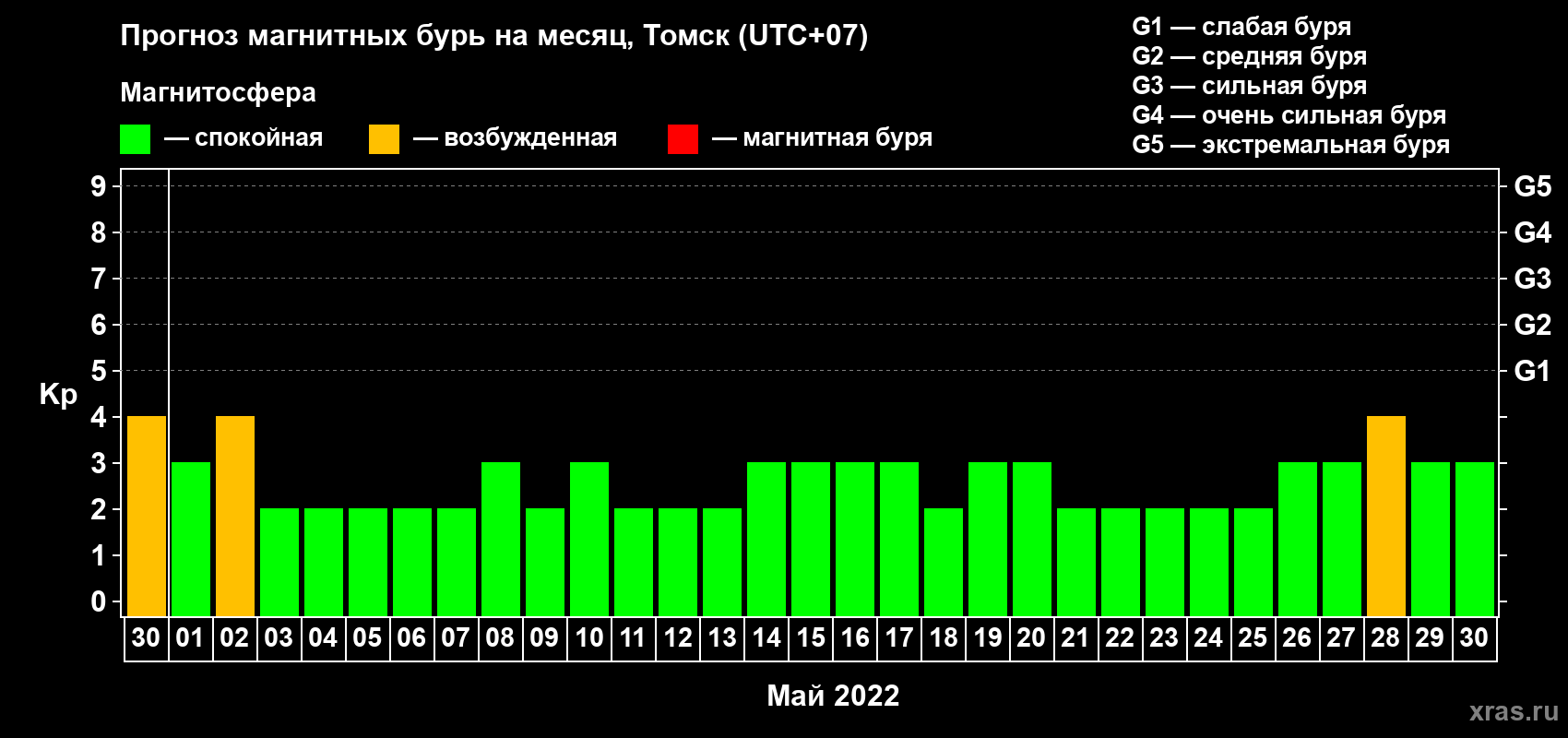Прогноз магнитных бурь в Томске на 30 апреля 2022 года