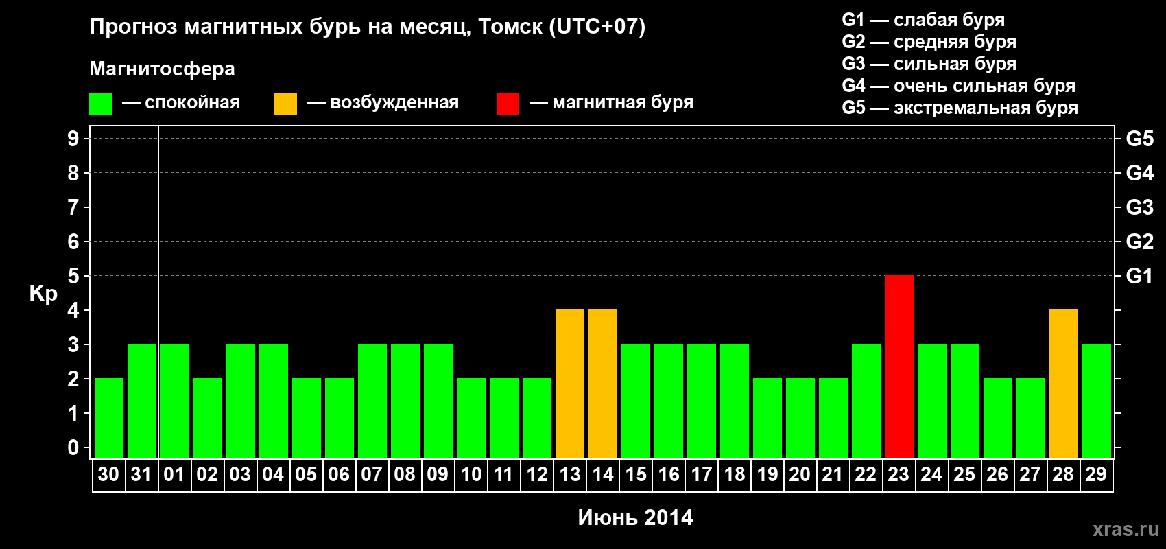 Прогноз магнитных бурь в Томске на 30 мая 2014 года