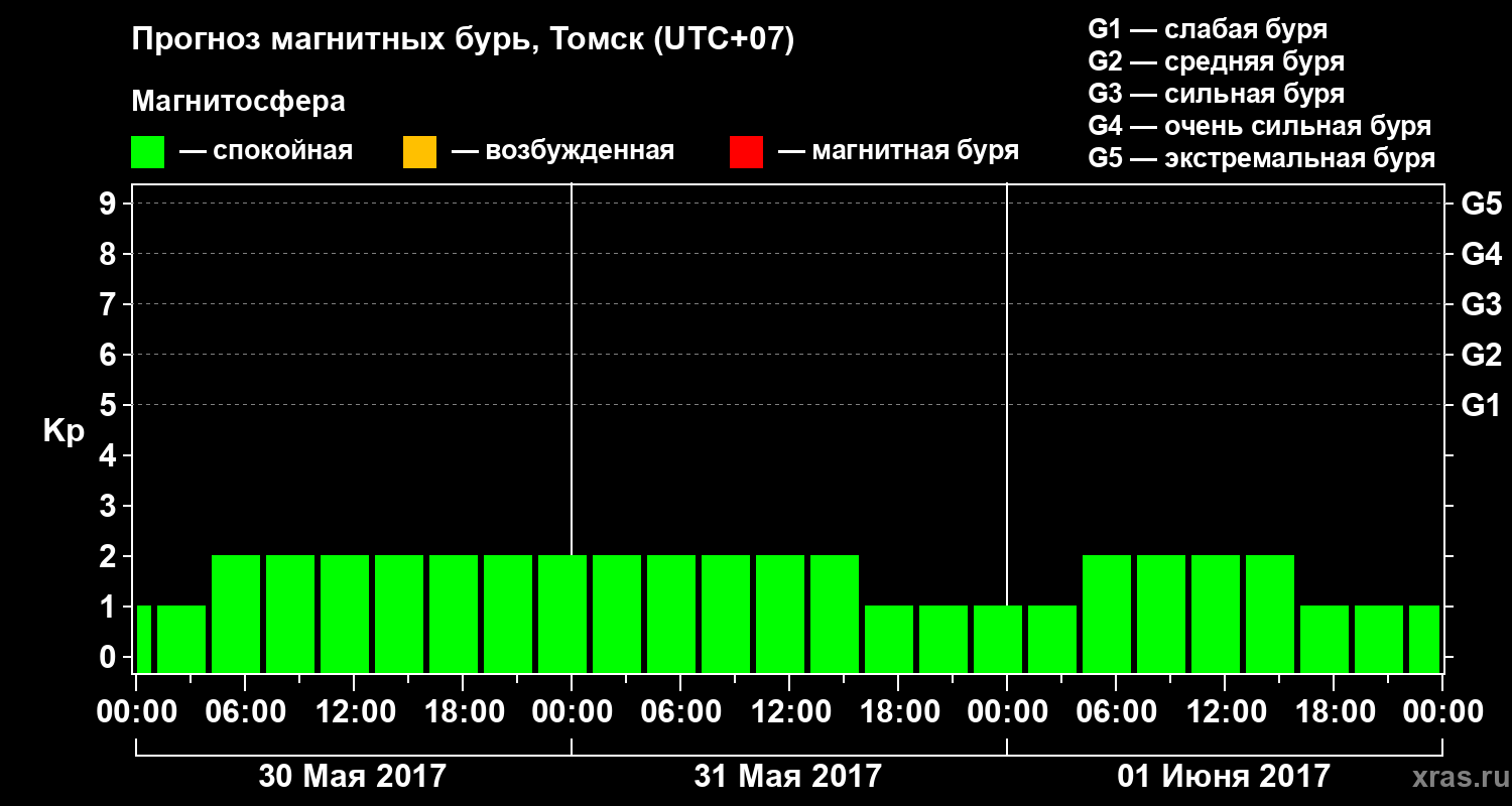 Прогноз магнитных бурь в Томске — 30 мая 2017 года