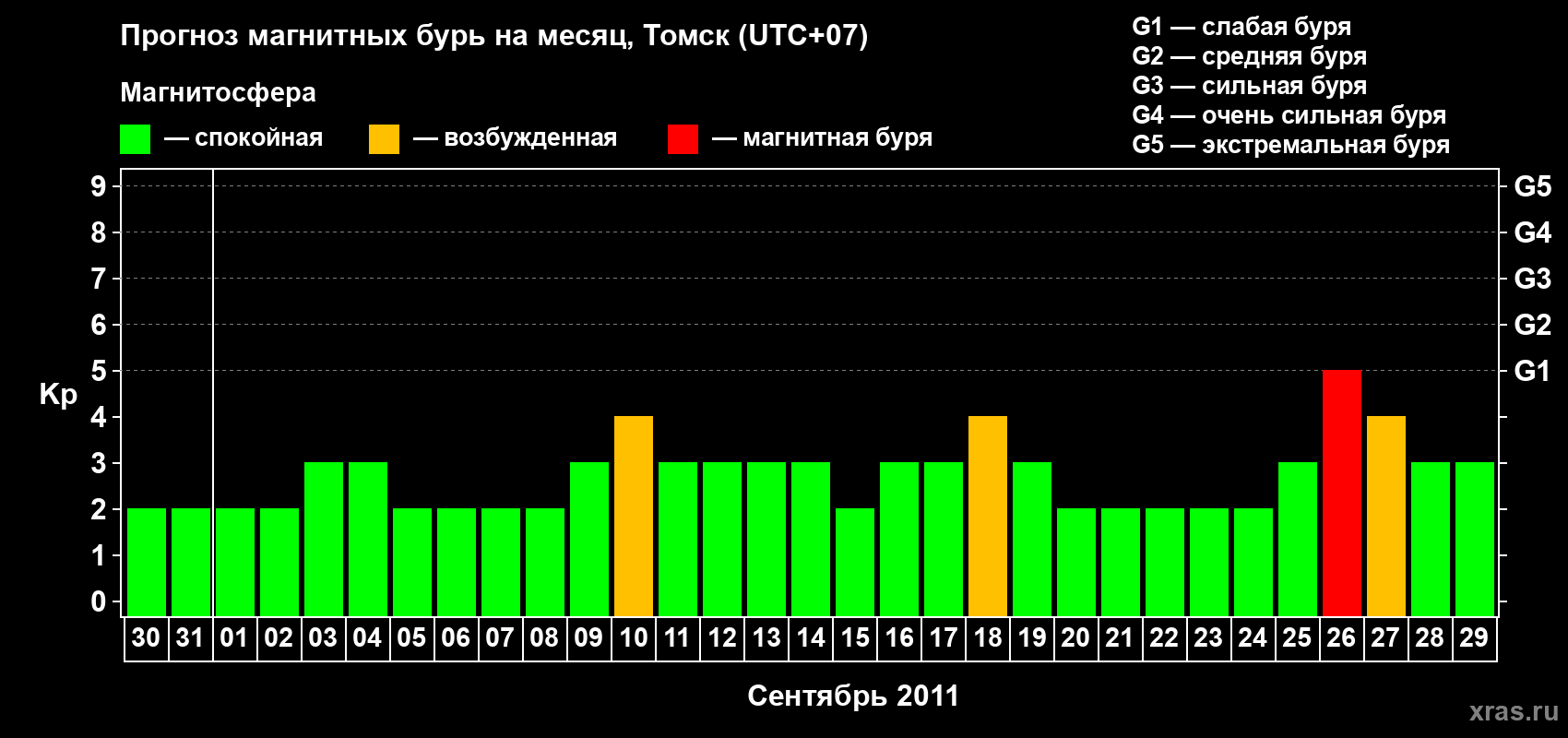 Прогноз магнитных бурь в Томске — 30 августа 2011 года