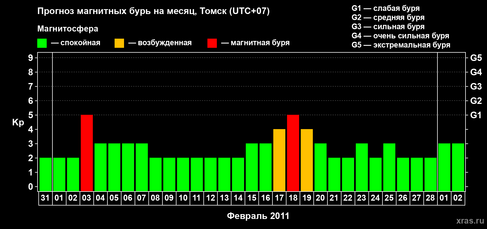 Прогноз магнитных бурь в Томске — 31 января 2011 года